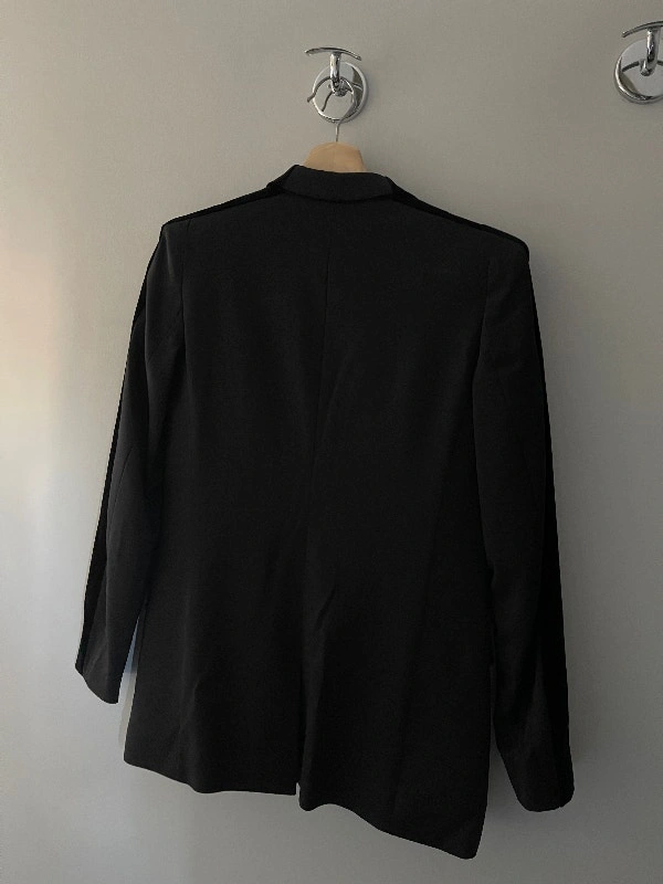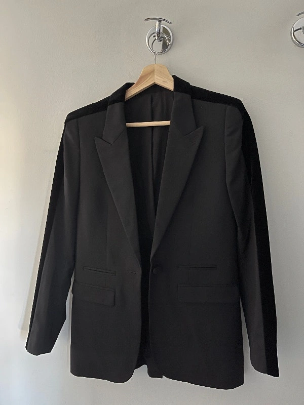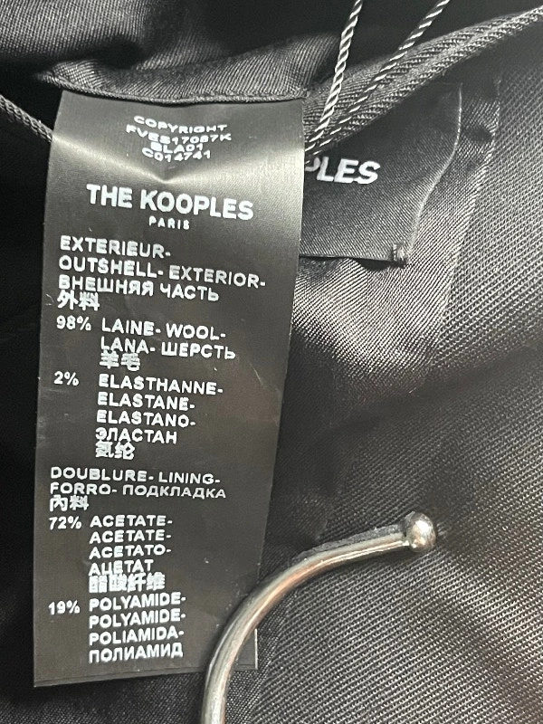 Brand new with tags, authentic from French designer brand THE KOOPLES. This is a black stretch smoking jacket in size EU 32 or US 0. THE KOOPLES makes beautiful French fashion, similar to other high-end designer labels like Sandro, Maje, and Ba&Sh.