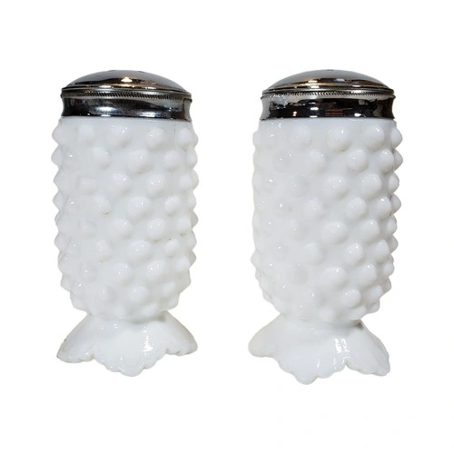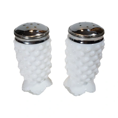 Fenton Hobnail Salt Pepper Shaker Milk Glass Dew Drop Scalloped