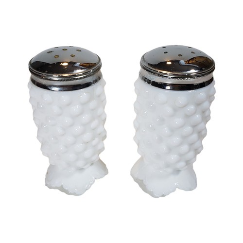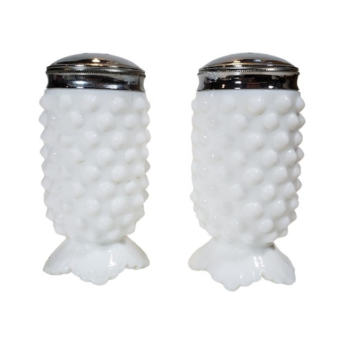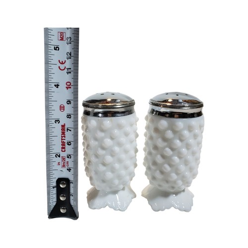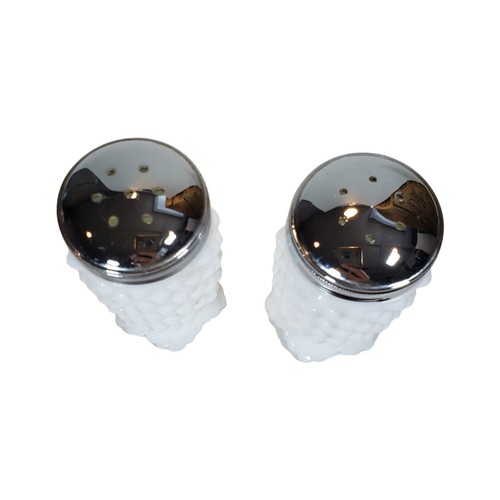 Fenton Hobnail Salt Pepper Shaker Milk Glass Dew Drop Scalloped
