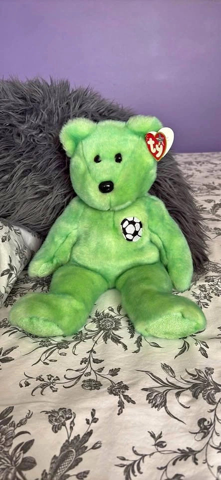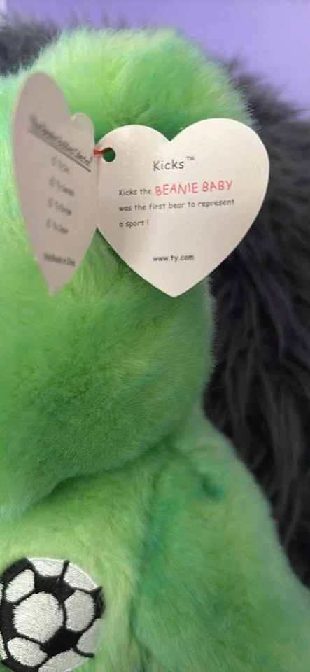 TY Beanie Buddy Name: Kicks (the Soccer Bear). Size: 14 inches. Inside tag wording: Kicks the Beanie Baby was the first bear to represent a sport! From a no smoking and very clean home. Brand new condition. Tags attached. Pick up in St James.
