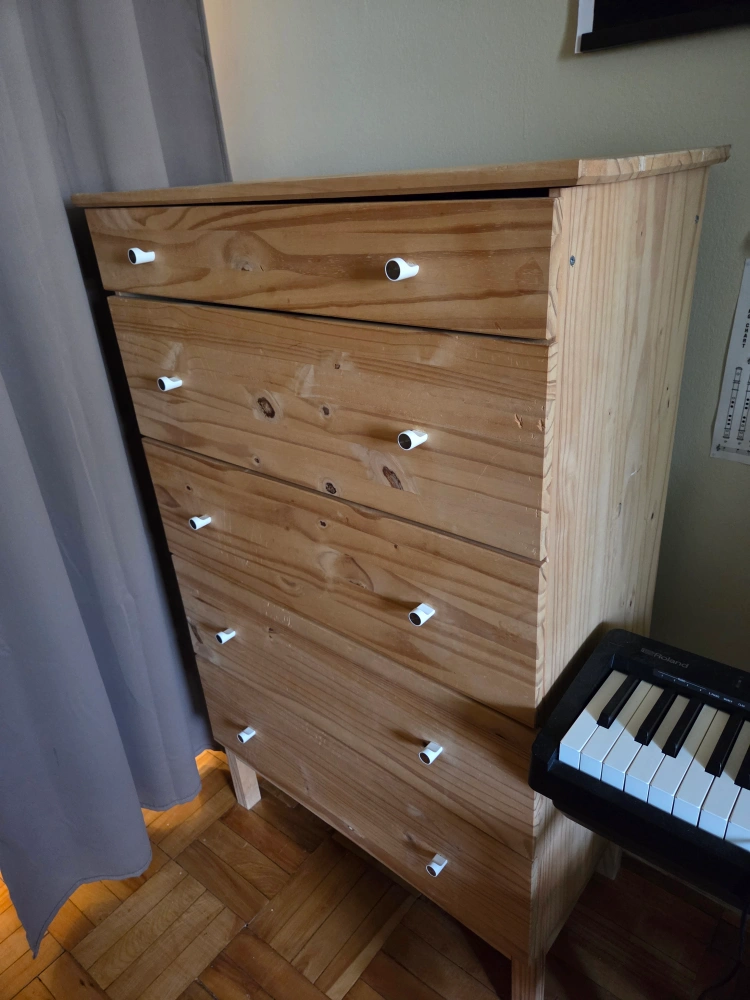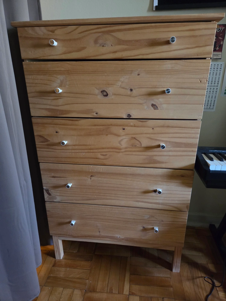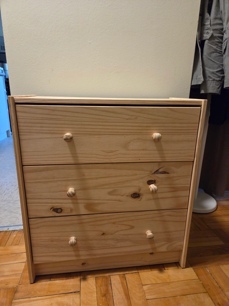 2 Ikea dressers, pine 1) RAST 3 drawers https://www.ikea.com/au/en/p/rast-chest-of-3-drawers-pine-50617321/ 2) TARVA 5 drawers https://www.ikea.com/ca/en/p/tarva-5-drawer-chest-pine-70589869/