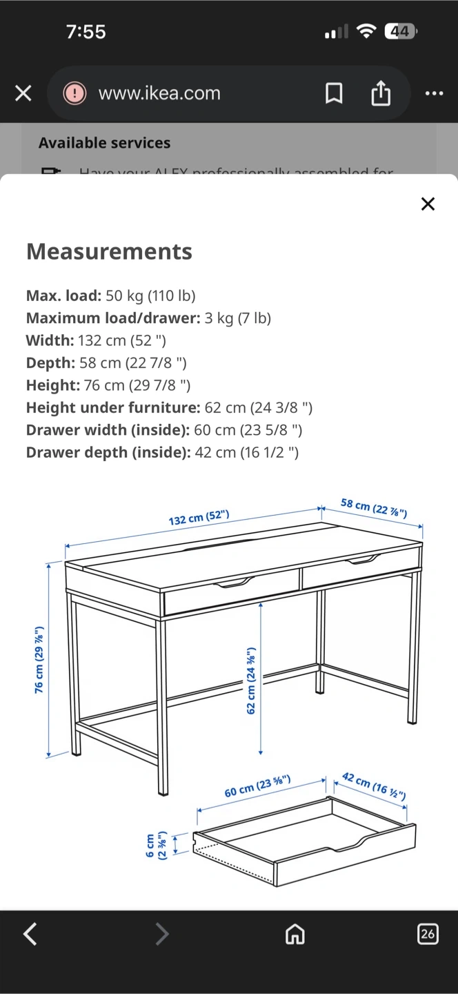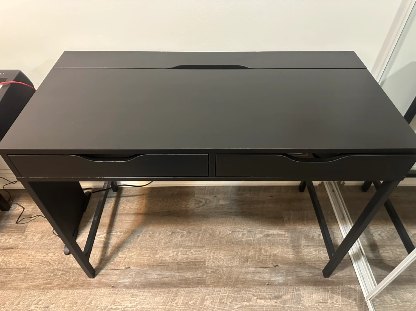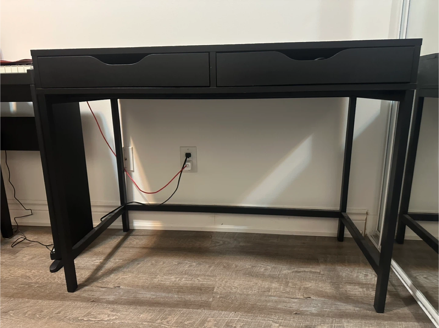 28Selling a black IKEA Alex desk in great condition. It has two drawers for storage and cable management. No wears & tears! Like new and well maintained. Asking 100$ or OPEN FOR REASONABLE OFFERS. No low balling please!! Dimensions: - Width: 132 cm (52") - Depth: 58 cm (22 7/8 ") - Height: 76 cm (29 7/8 ") - Drawer width (inside): 60 cm (23 5/8 ") - Drawer depth (inside): 42 cm (16 1/2 ")