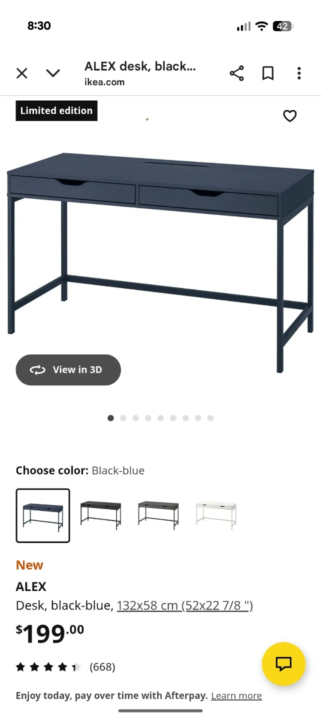 18Selling an IKEA ALEX desk in limited edition blue! It's in great shape and ready for a new home. The desk measures 132x58 cm (52x22 7/8 "). Originally bought for $199