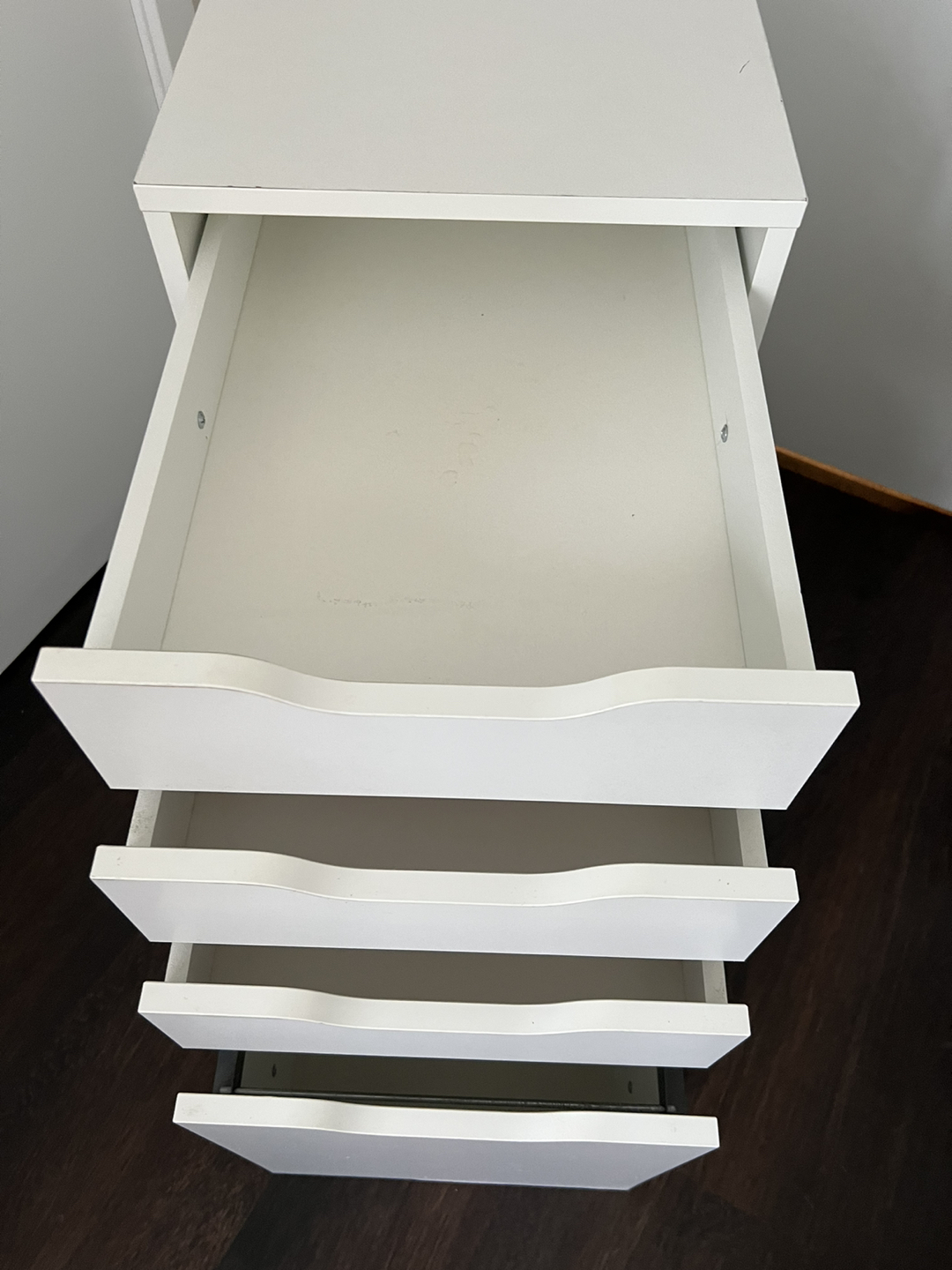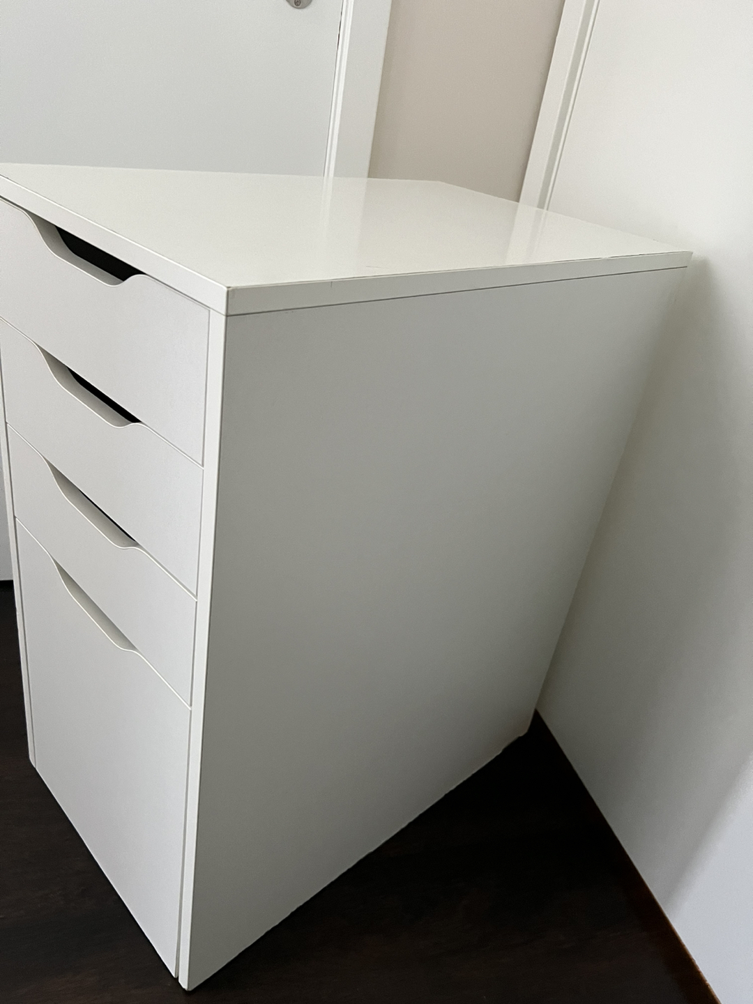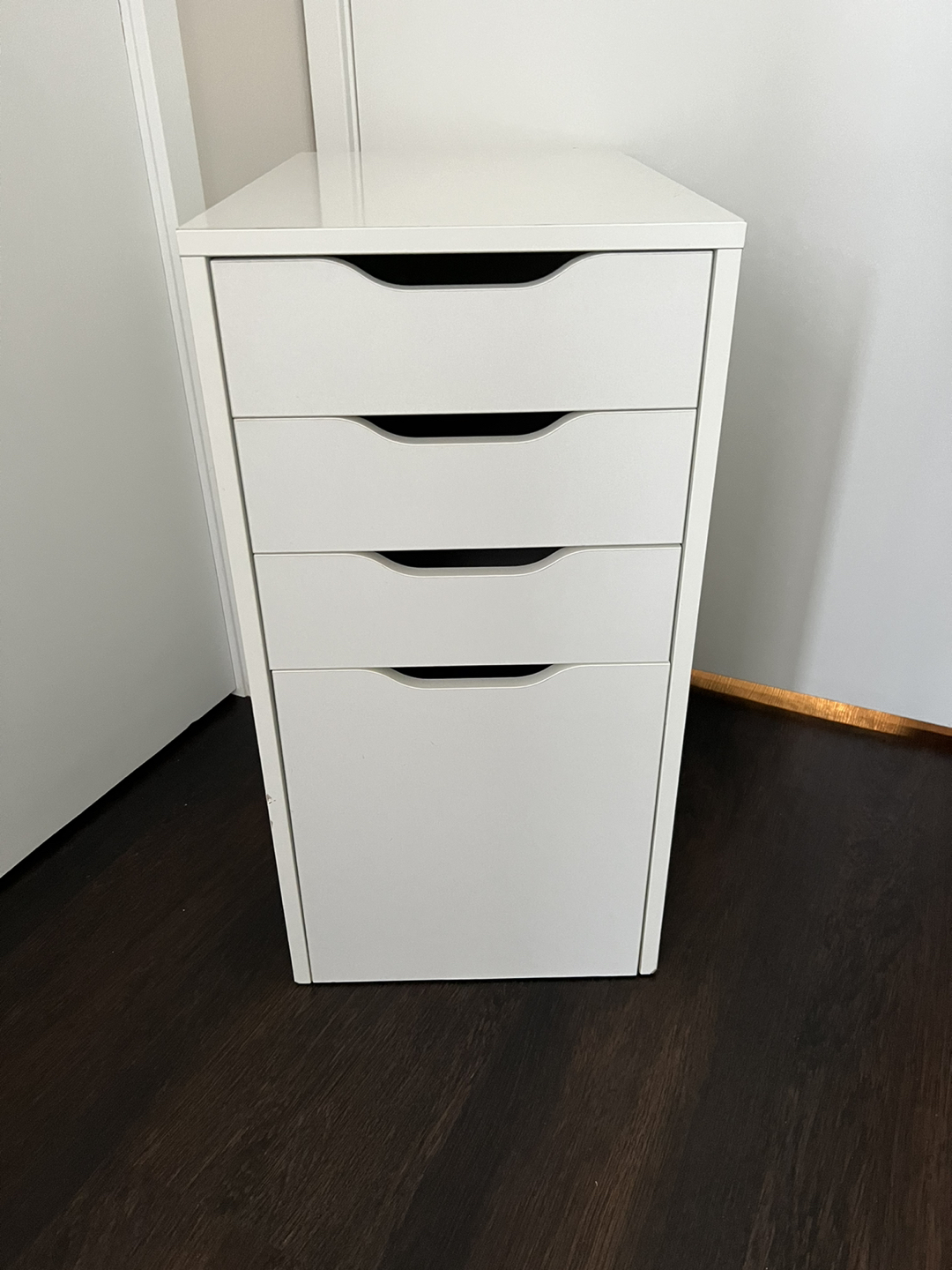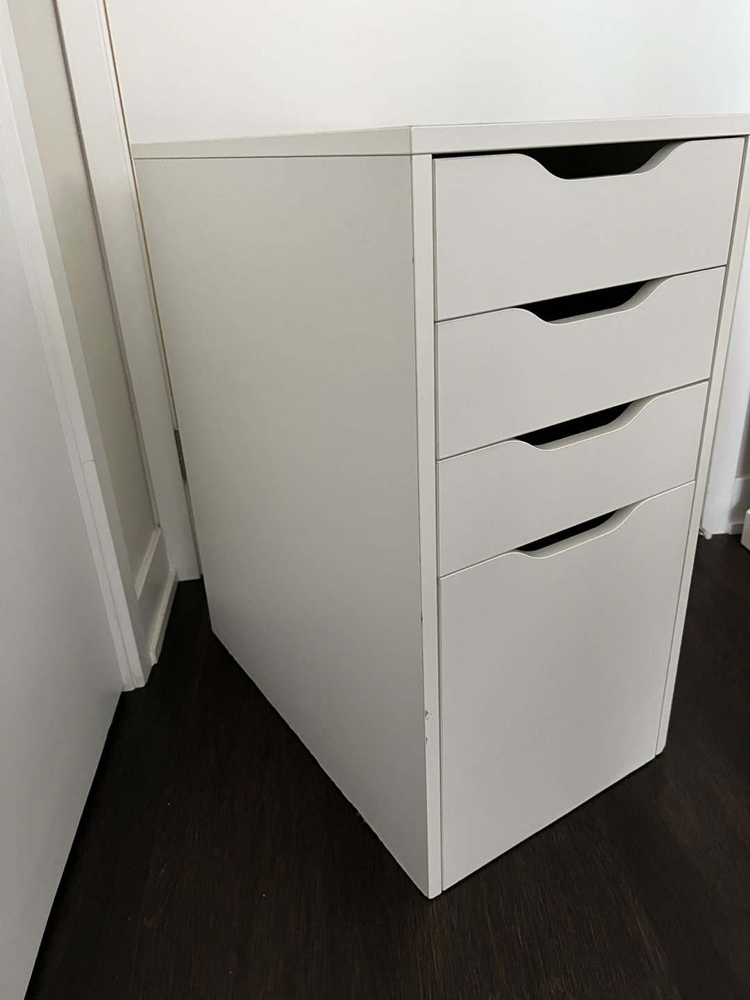 1000+IKEA ALEX Drawer Unit with Filling Storage, there are some minor imperfections in the white on the top and on the side just some little scratches from moving. Please see Photos, its very clean. Asking $80- Firm this Retails at IKEA for $169 plus tax = $190.97 I can meet you with it, in the lobby of my condo for pickup - Located at Finch and McCowan In Scarborough Please see my other ads