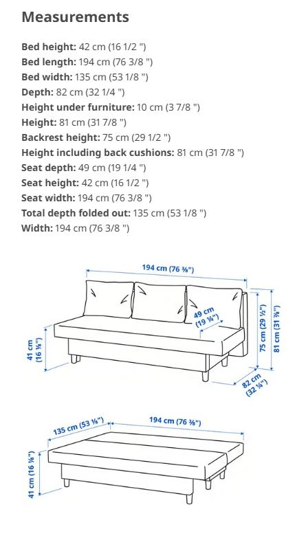 15Gently used, bought brand new from IKEA in January 2025. Excellent condition — smoke-free, pet-free home. Folds out easily into a comfy double bed with storage underneath. Dimensions: 194 cm × 135 cm (bed size). Current IKEA price: $899+tax. Moving so we no longer need this. Located in Mississauga [L5J]. Open to Offers