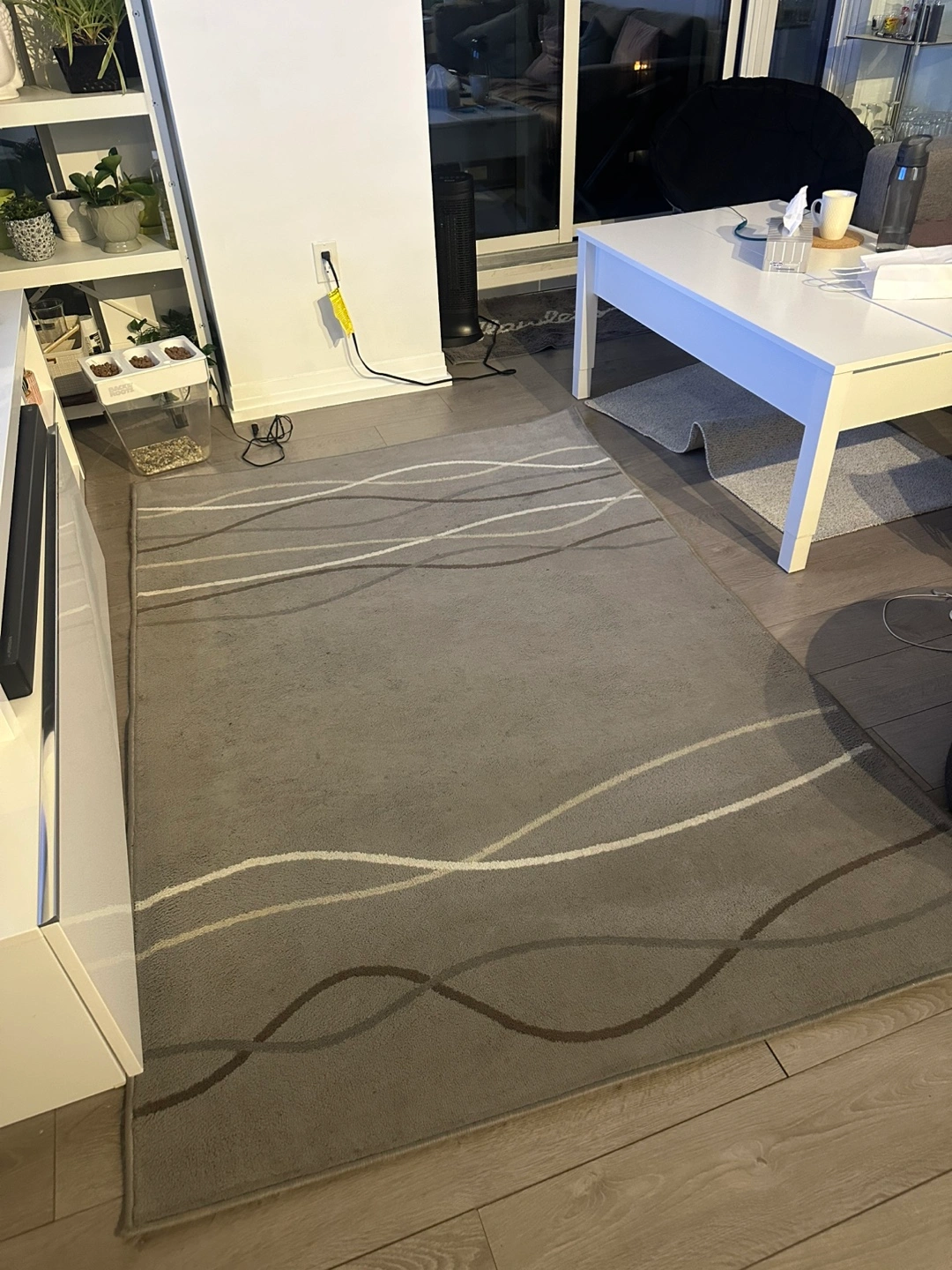 529Gray and brown area rug with a wavy pattern. The rug is in good condition. Selling it cheap as moving out