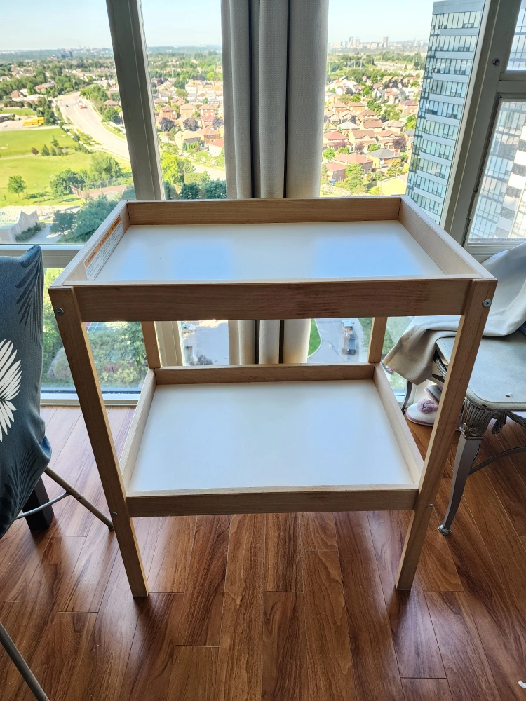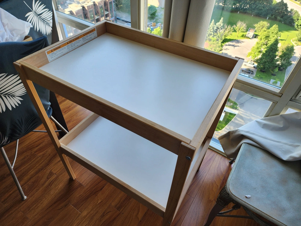Nice wooden Ikea changing table It's in very good condition. Very useful for new born babies. IKEA price is 69.99 plus tax. Sanitized cleaned, smoke free and pet free home.