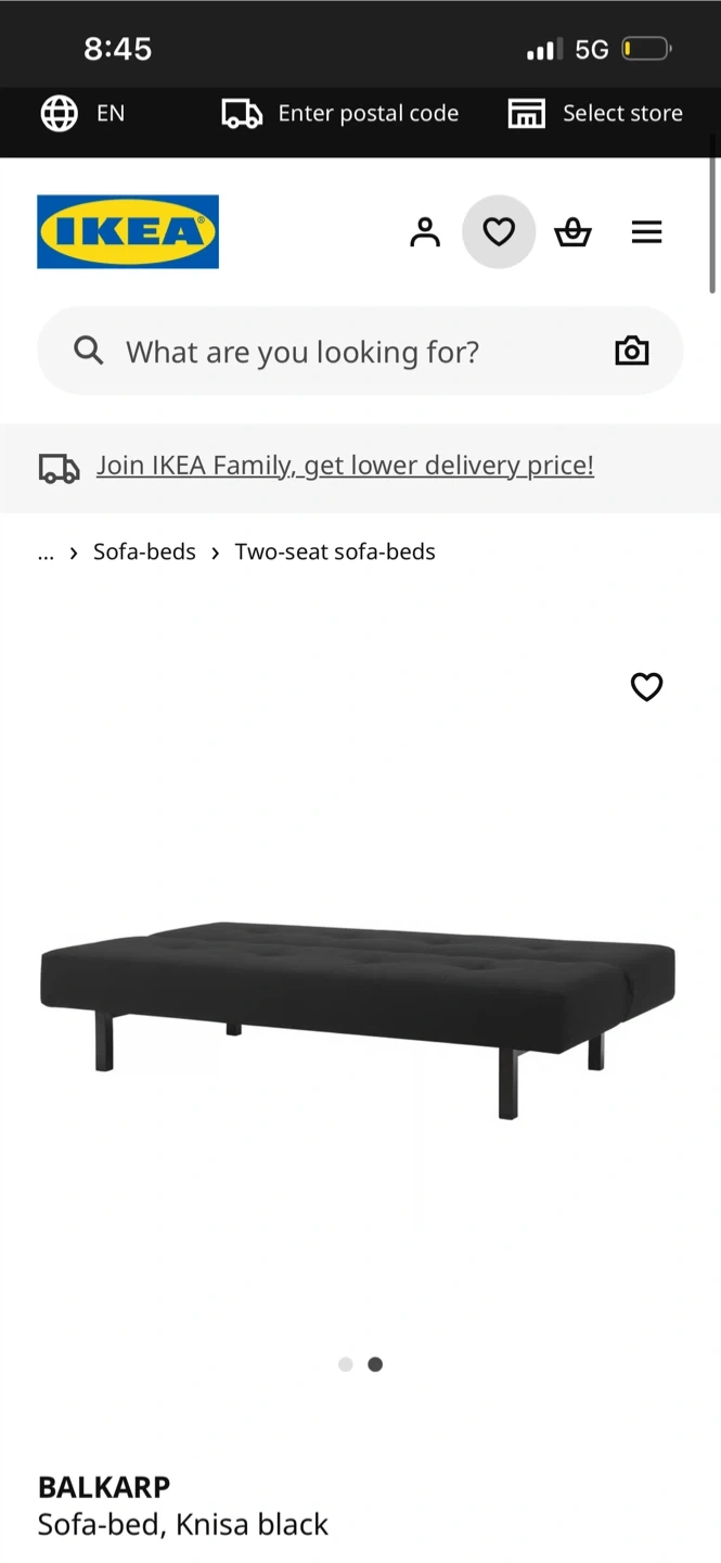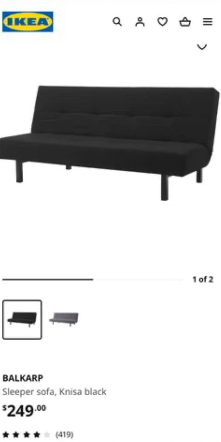 Selling an IKEA Balkarp sleeper sofa in Knisa black. Folds out into a bed. It's currently wrapped in plastic for easy transport. Retails for $249 but I’m selling for $167. Could be a little flexible depending on situation. Serious inquiries only.