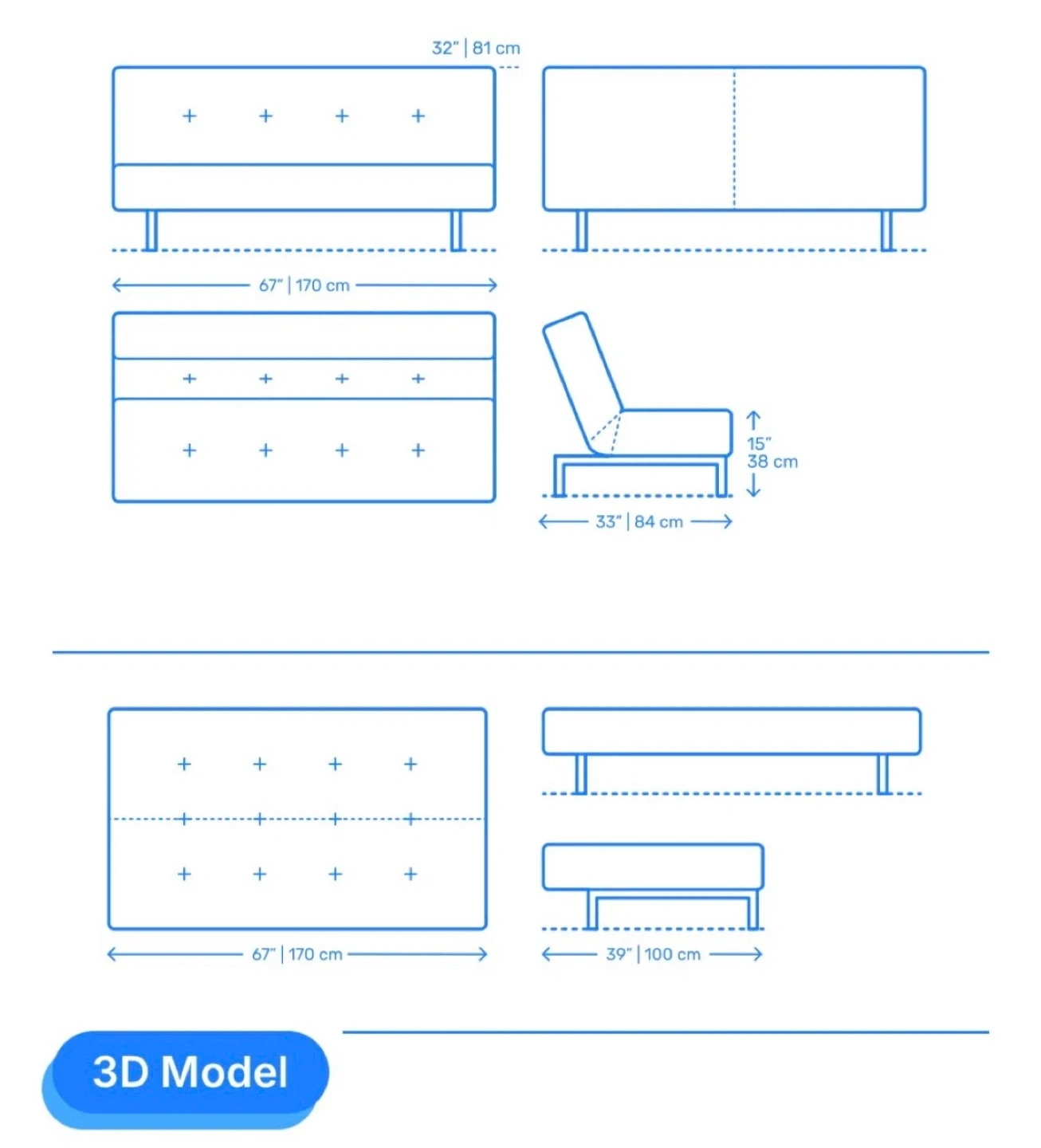 Couch 3-Seats recline head rest