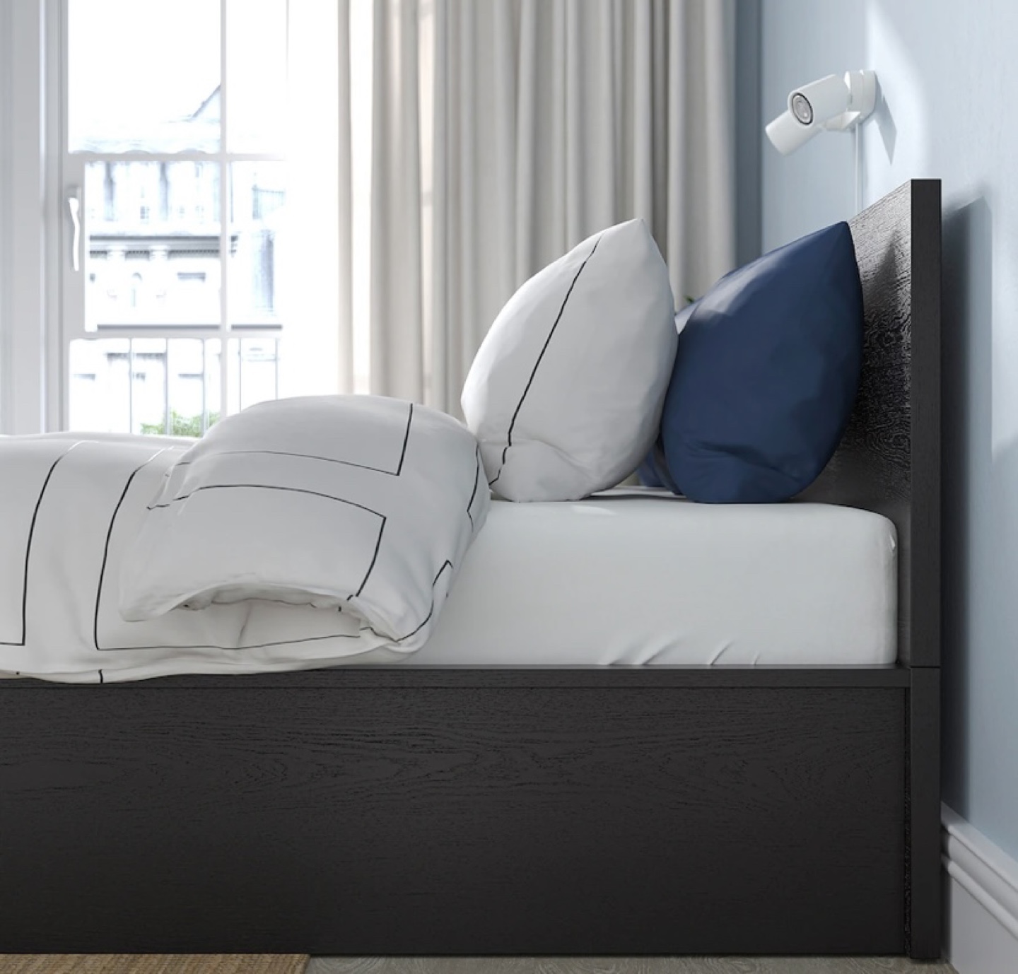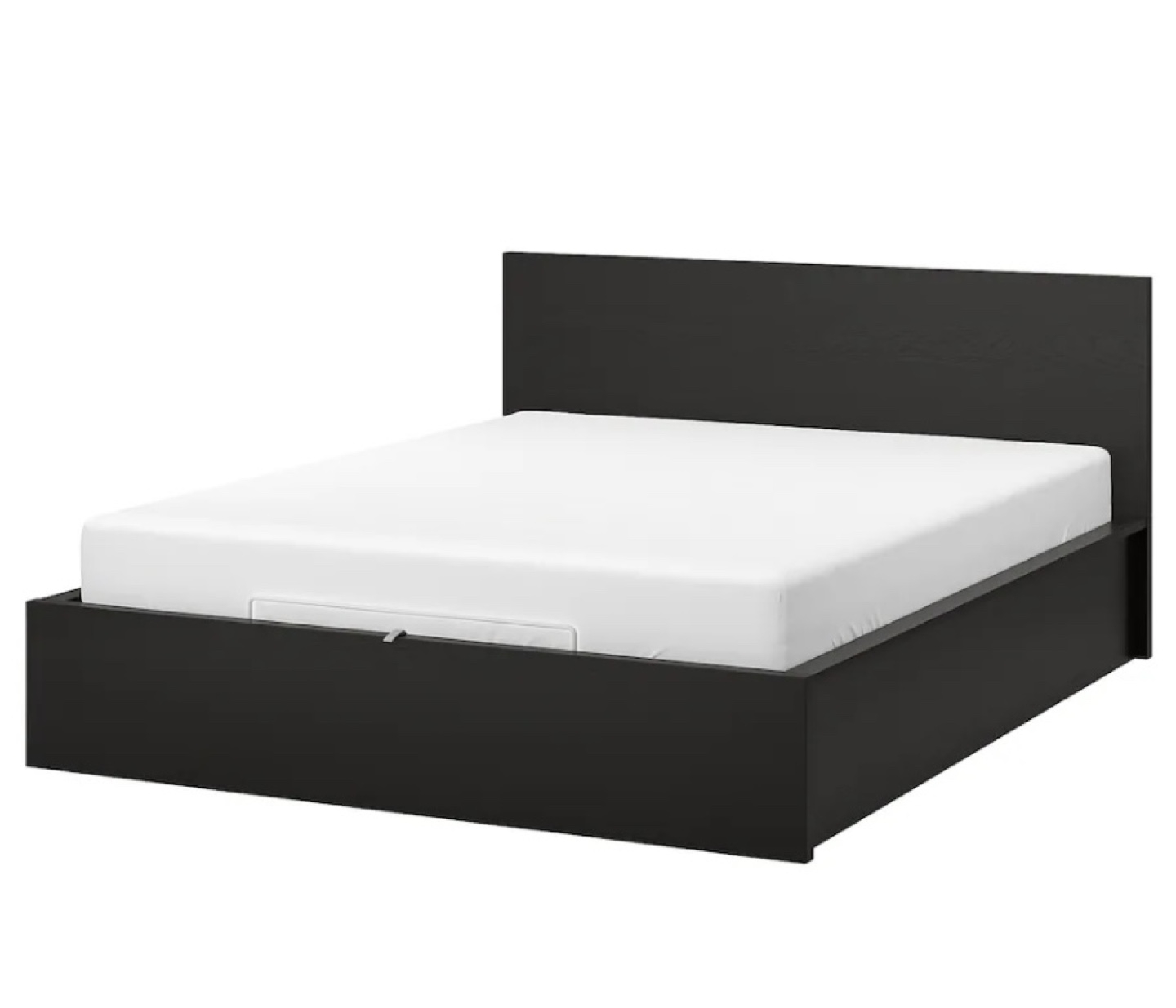 Queen bed frame with pull up storage. Black. Includes slatted bed base.