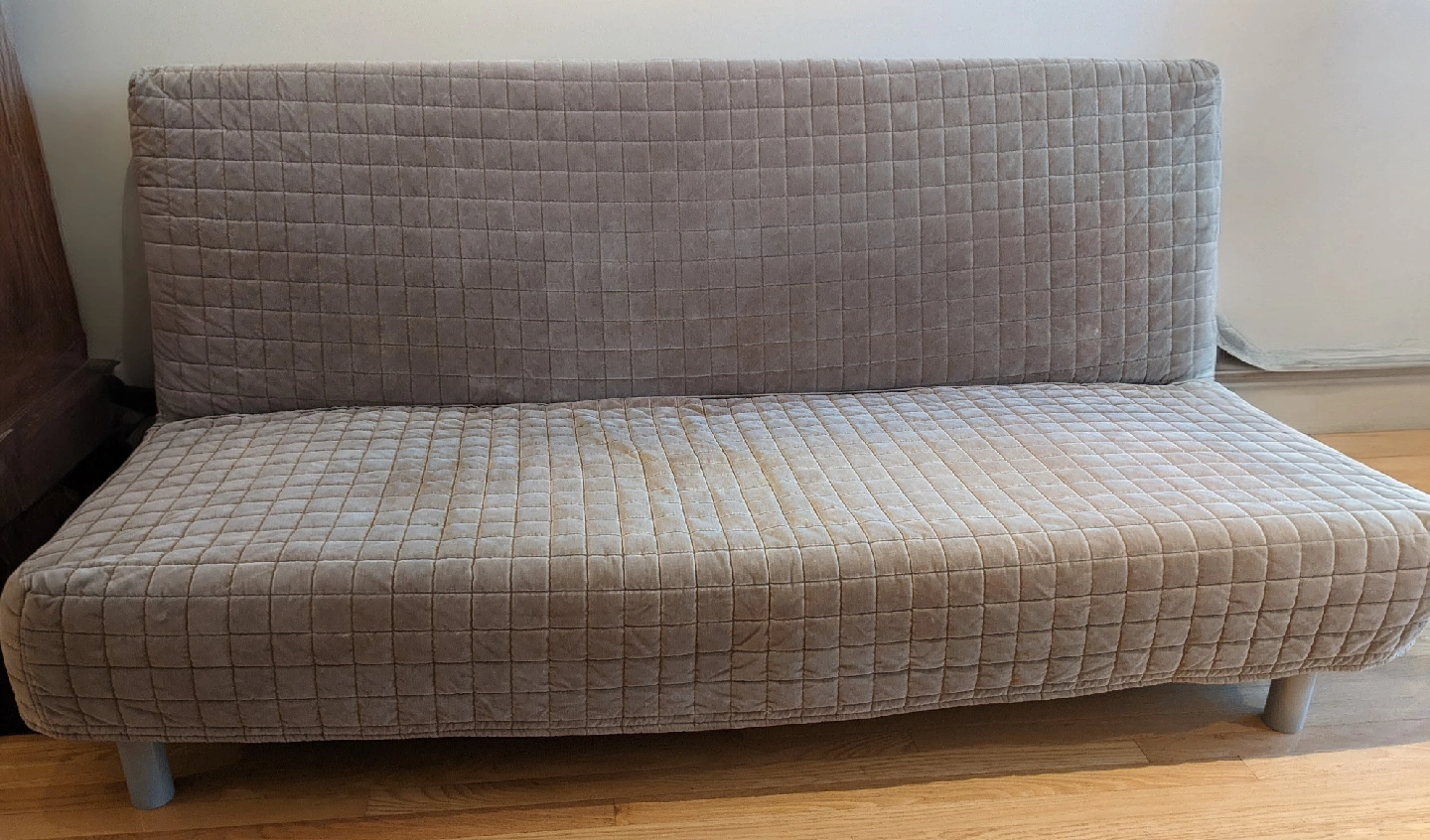 Selling an IKEA Beddinge Lovas sofa bed (Frame, Sofa bed, Sofa cover)! It's in great condition, clean, from pet free home and has a brown quilted cover. Perfect for a small space or guest room. It folds out easily into a comfortable bed! Dimensions are 140 x 200 cm (55 1/8 x 78 3/4") It weighs 8 kg / 17 lbs