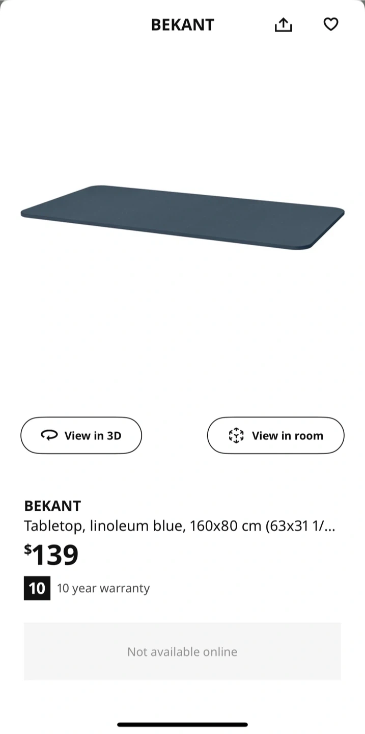 20Selling an IKEA BEKANT tabletop in linoleum blue! It measures 160x80 cm (63x31 inches). This tabletop is super durable. Perfect for a home office or study space Never use. I just want a different size. Pick up in SW Calgary.
