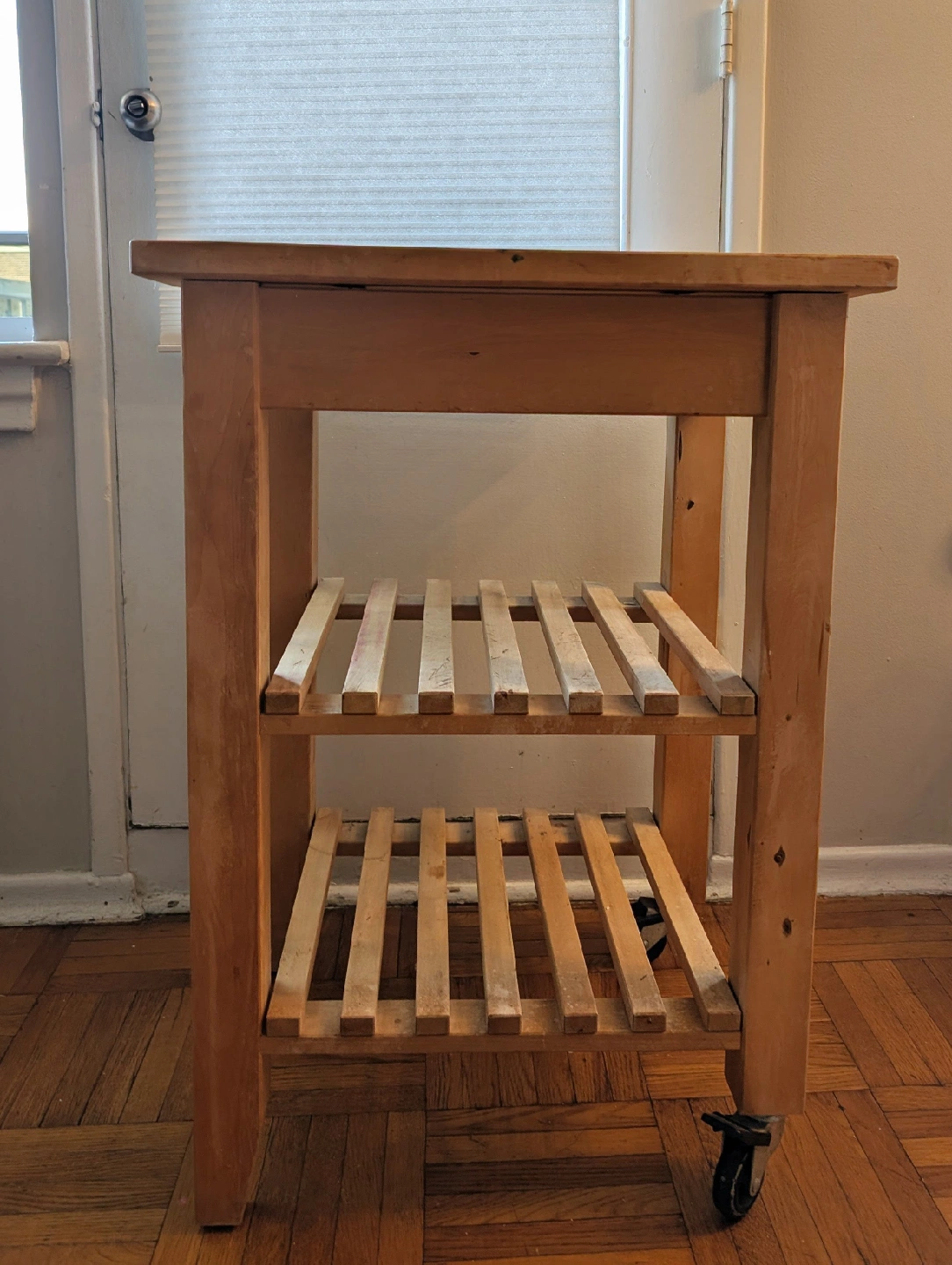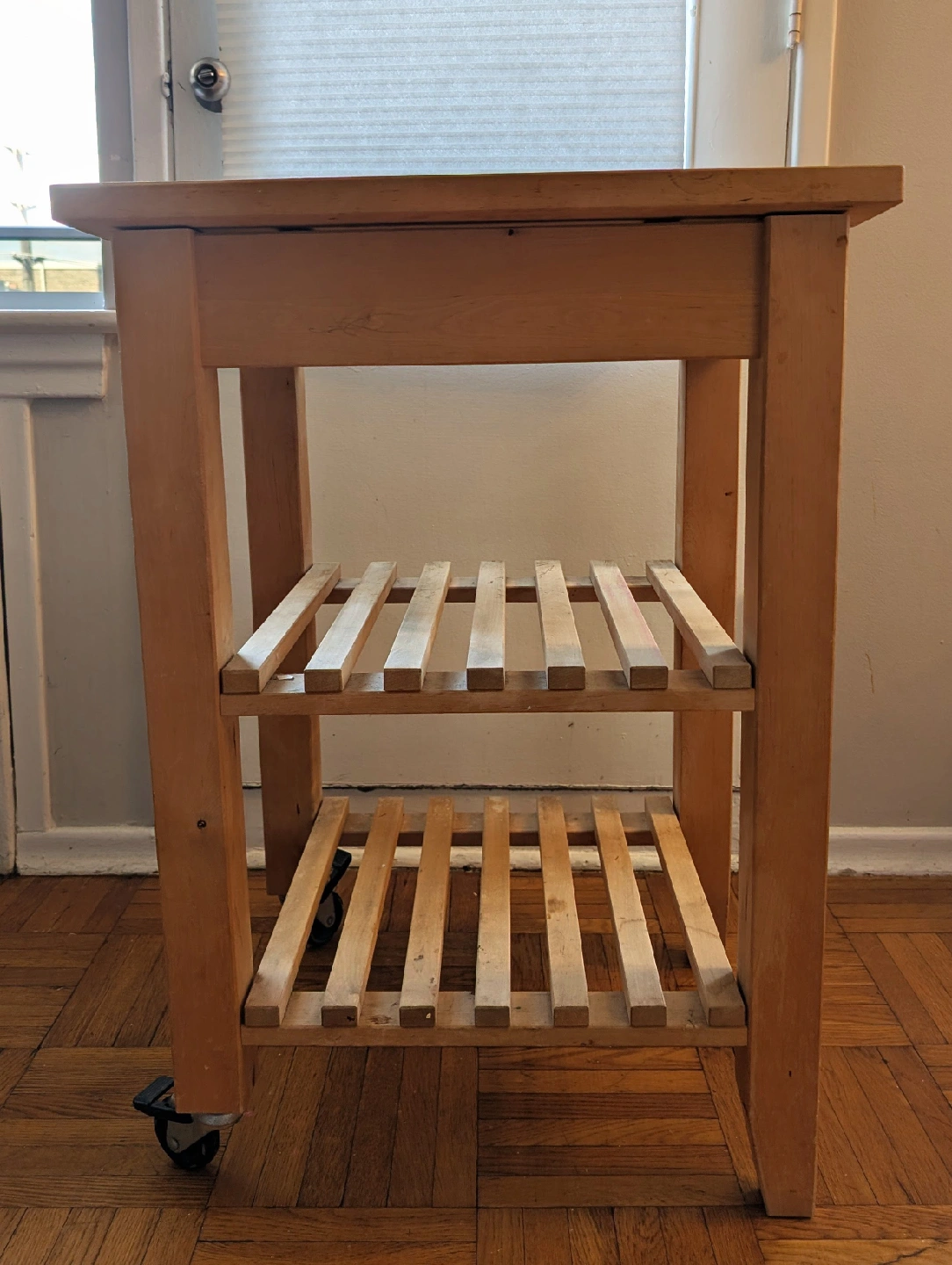 Selling a IKEA BEKVAN wooden kitchen cart with wheels. It features two shelves for extra storage. Non smoking / Pet free house $50 OBO 85cm (H) x 58cm (L) x 50cm (W)
