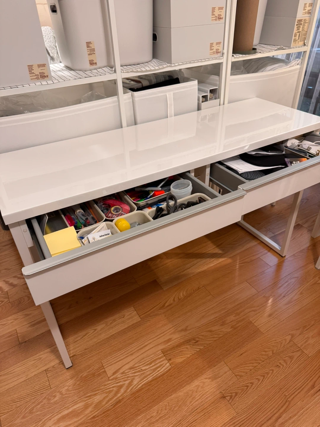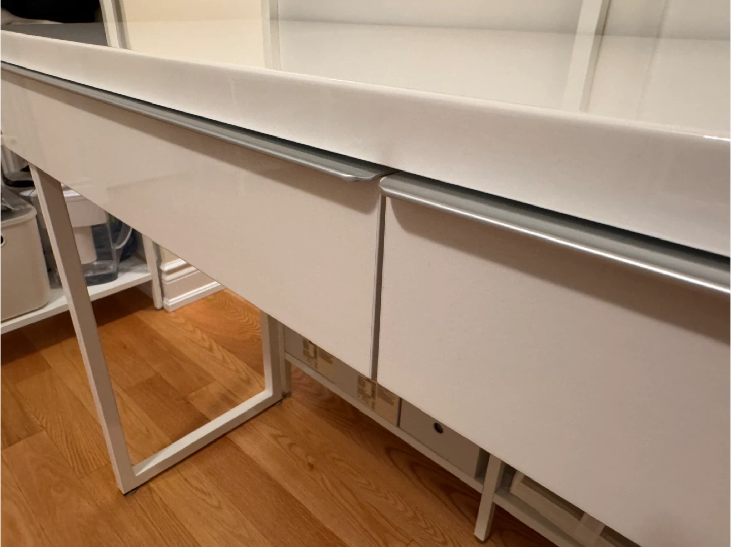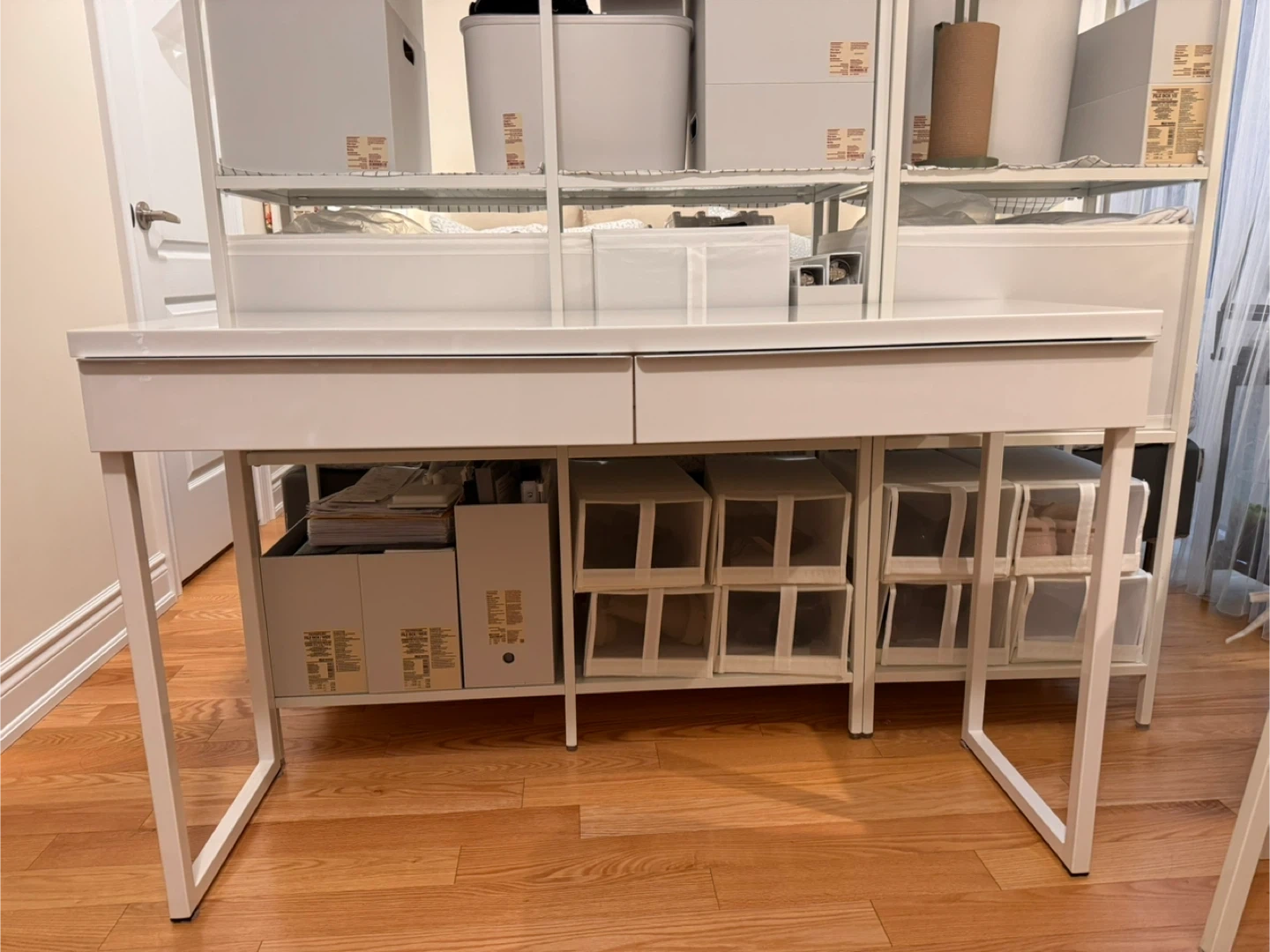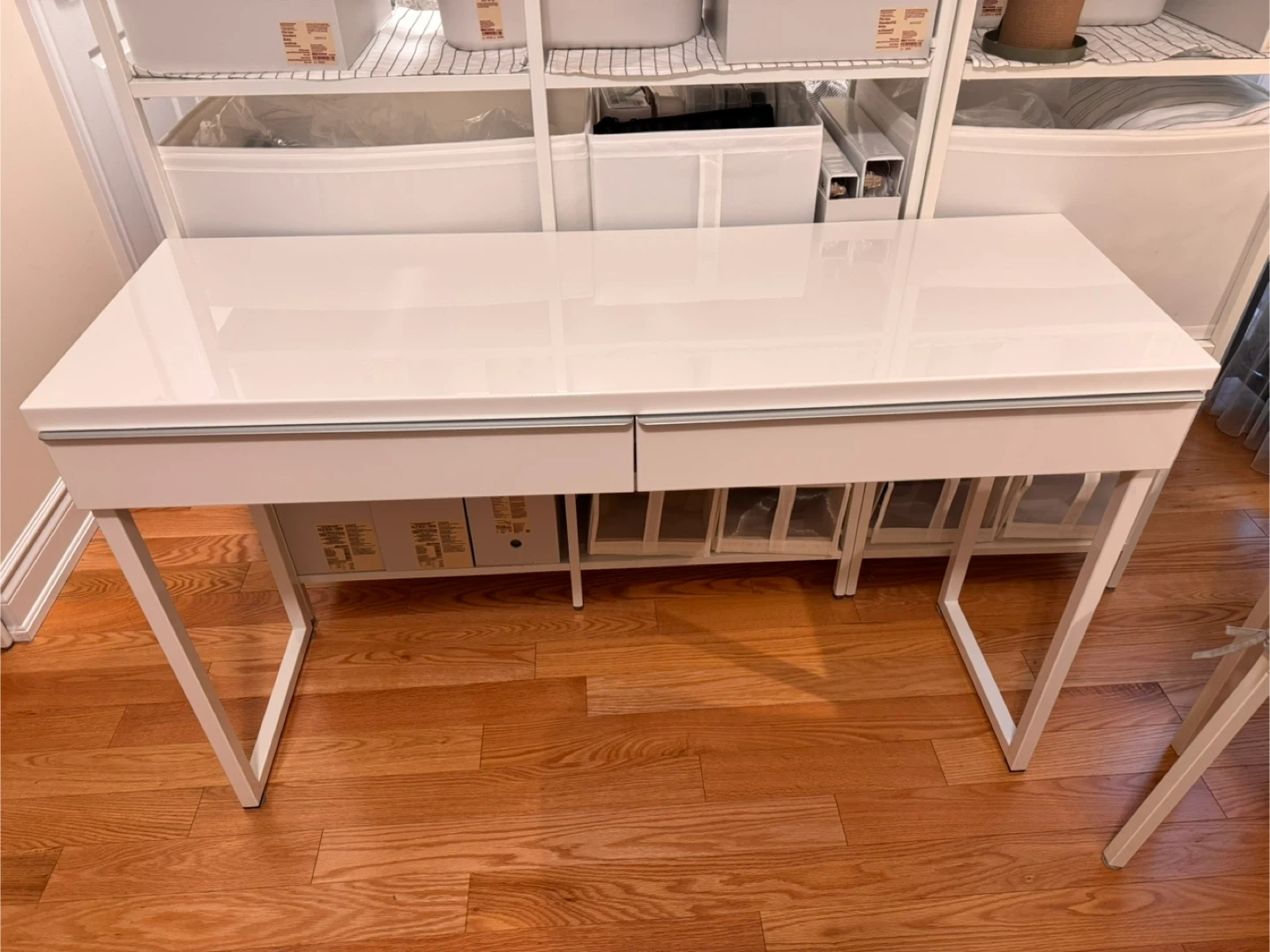 60Discontinued quality desk from IKEA. MINT condition, clean, no scratch! Good as new, no damage/chips. PRICE FIRM!!! DIMENSIONS attached in last photo. CONTENTS not included, desk only. If ad still up, it’s still available. Not answering on those who asks availability.