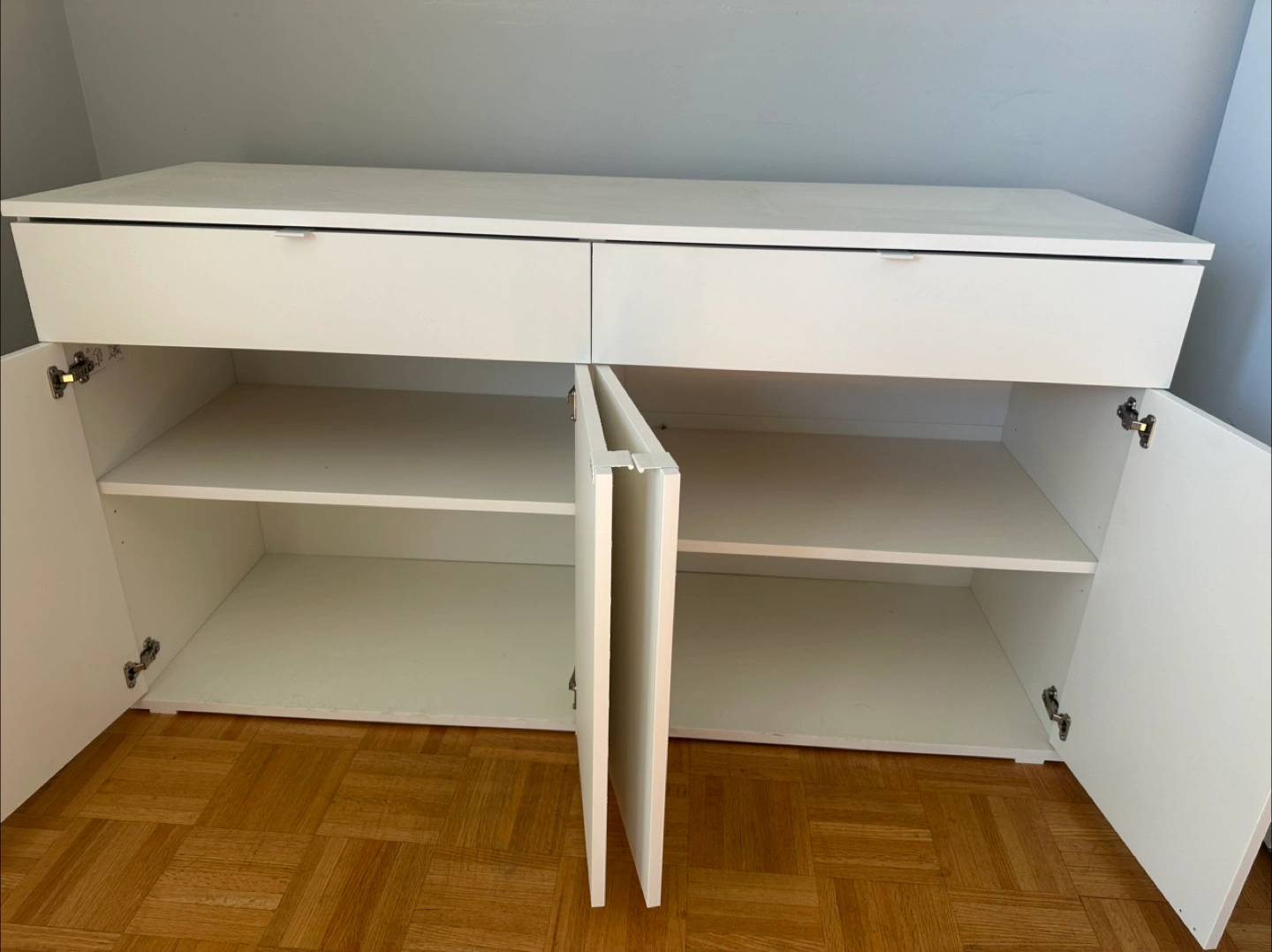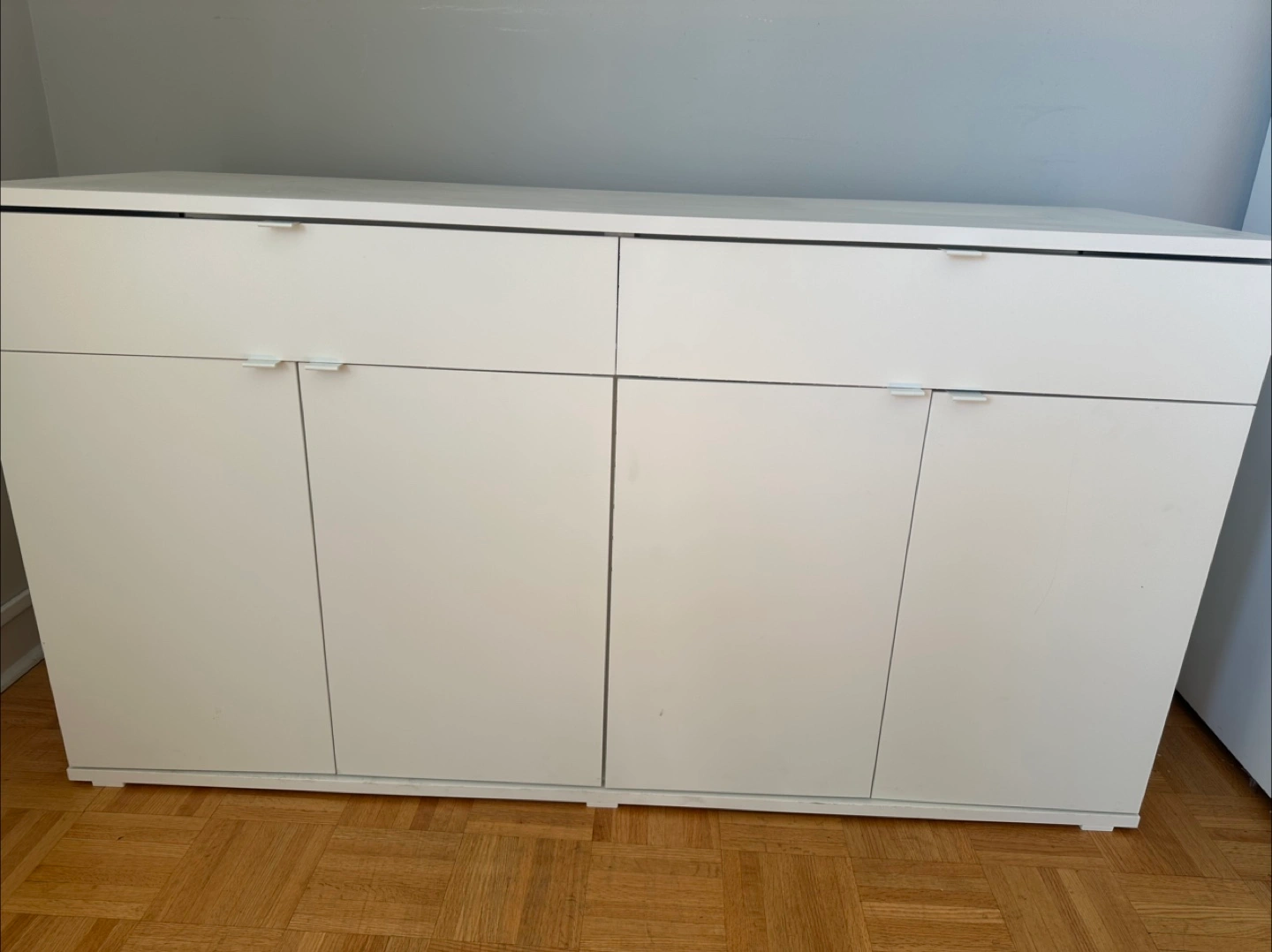 Looking to sell my IKEA Besta storage combination in white. It's in great shape and perfect for adding some extra storage to your home! This unit features doors and drawers, offering a versatile storage solution for any room.