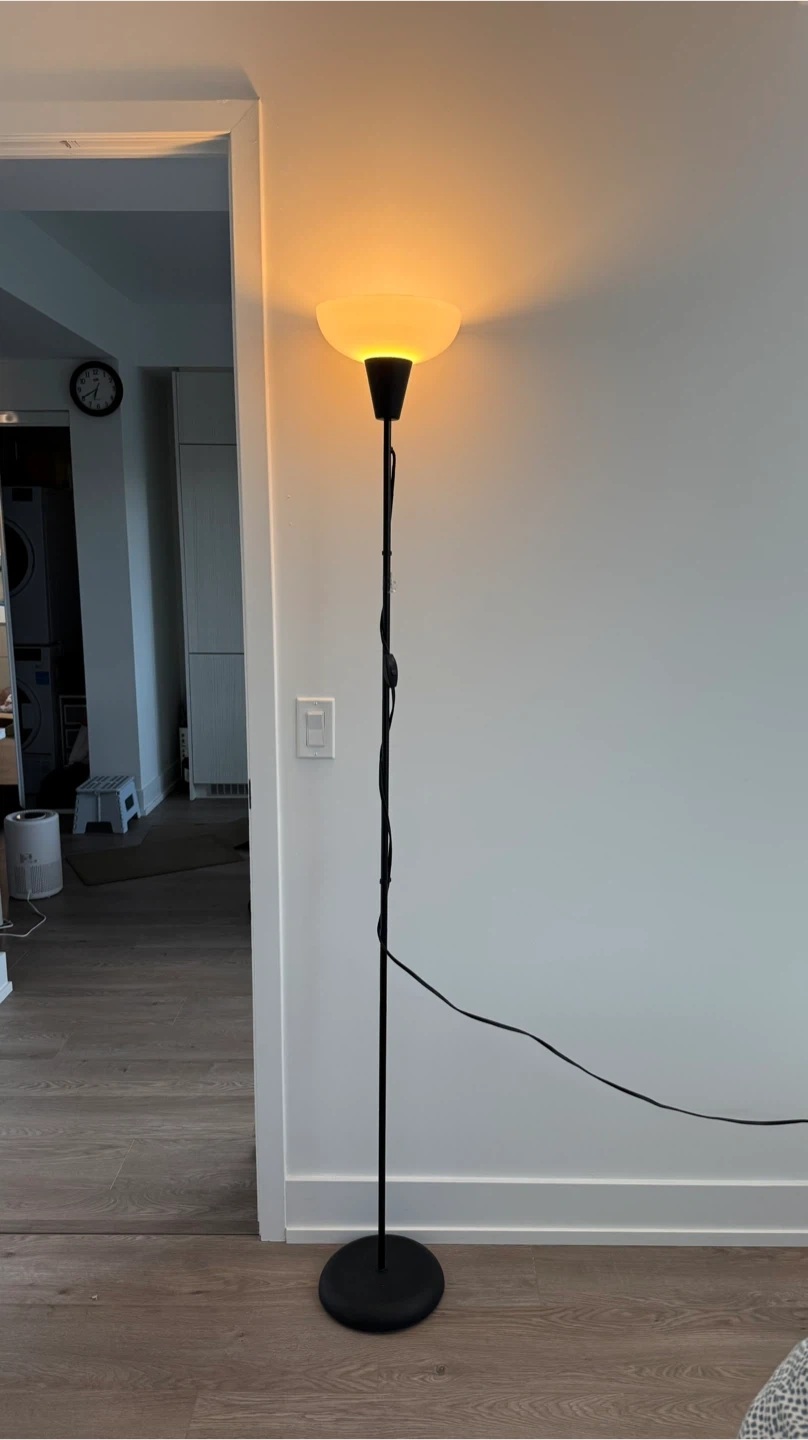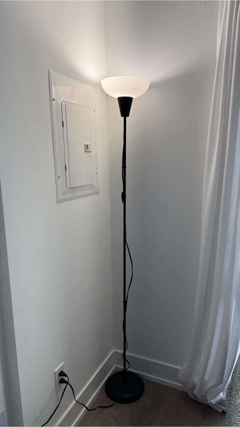 75Selling 2 (two) black floor lamp in great condition! It's perfect for adding some extra light to any room. The lamp has a simple and modern design that will fit in with any decor. It's easy to assemble and use, and it's a great way to brighten up your home