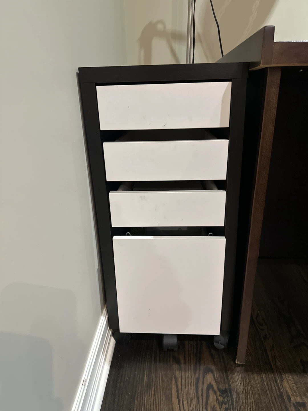70Selling a handy drawer unit with a black frame and white drawers. It's in great shape and perfect for adding some extra storage to any room. The drawers slide smoothly, making it easy to access your items