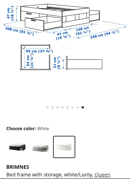 65Selling an IKEA Brimnes bed frame in white! It's a Queen size with 4 storage drawers, perfect for keeping your space tidy. Overall it's in good condition, but minor bruise when building (see last photo). Will need to be taken apart on arrival. no deliveries, pick up in Yaletown.