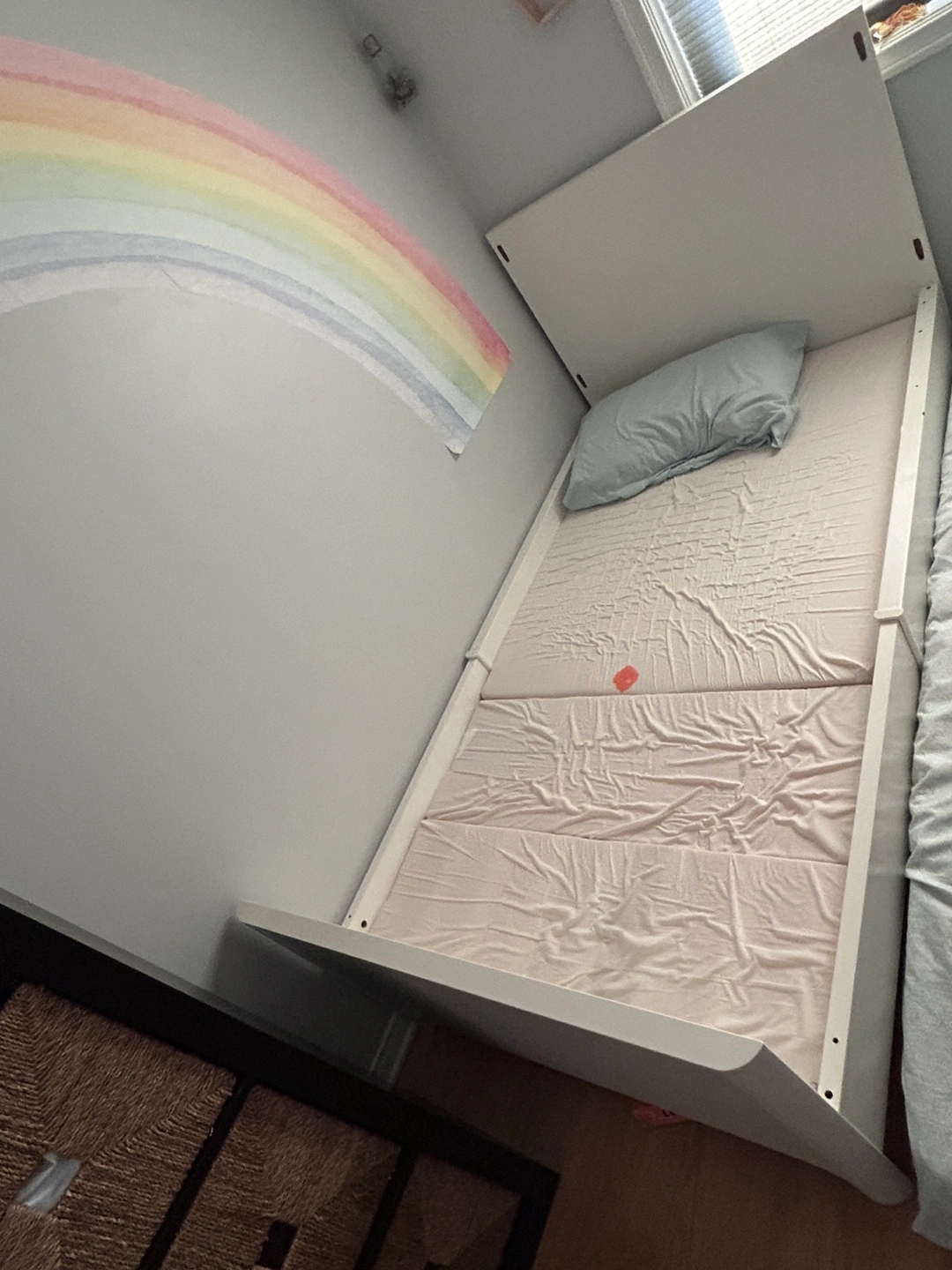 Queen Euro top Mattress and white bed with head board