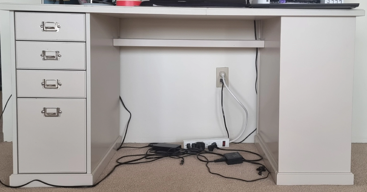 Selling a cream colored desk with drawers. It has a clean and simple design, perfect for a home office or study space. The desk features several drawers for storage, helping to keep your workspace organized. It's in good condition and ready for a new home. Couple of paint marks on the desk and inside of the drawers. PICK-UP ONLY