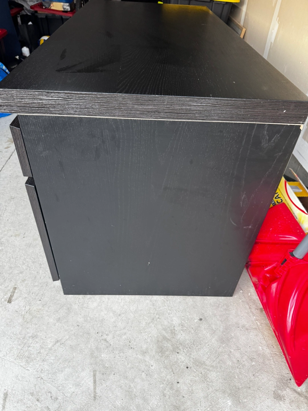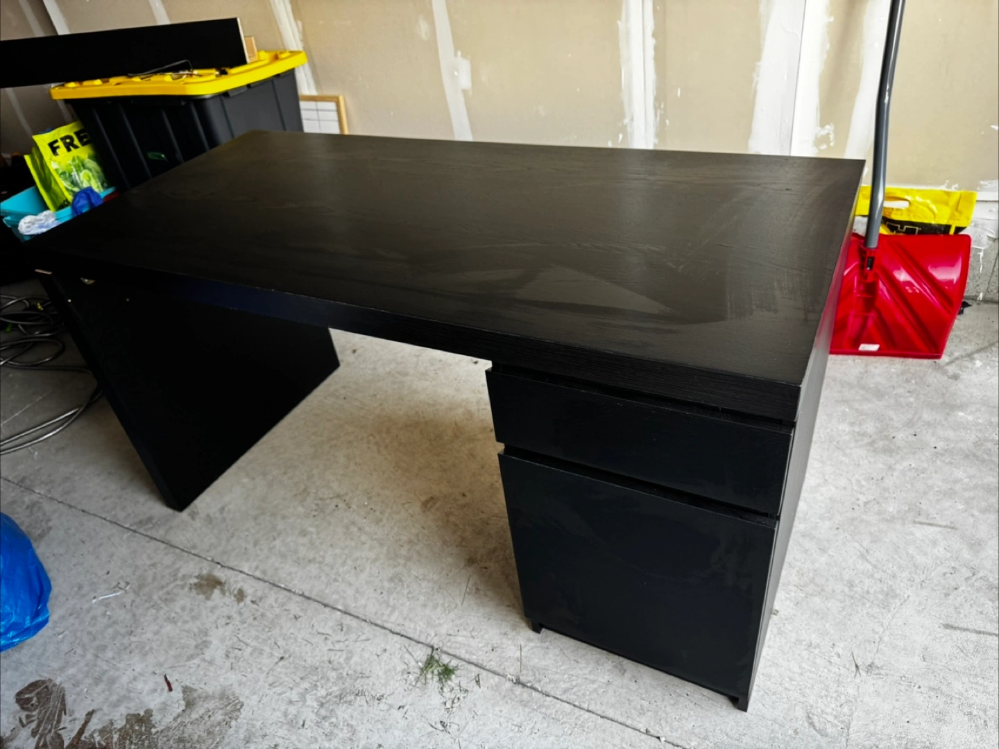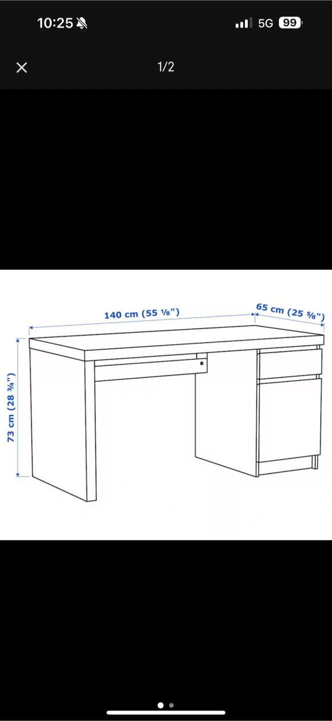 Modern desk, great for home office or student. Features a clean design and ample workspace. Includes one drawer and cub board for storage. Dimensions: 140cm (W) x 65cm (D) x 78cm (H). Minimal assembly required.