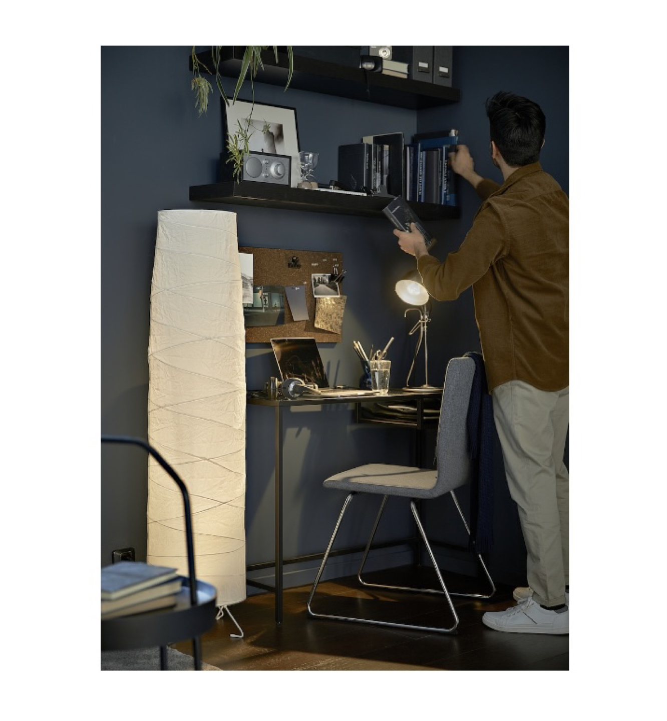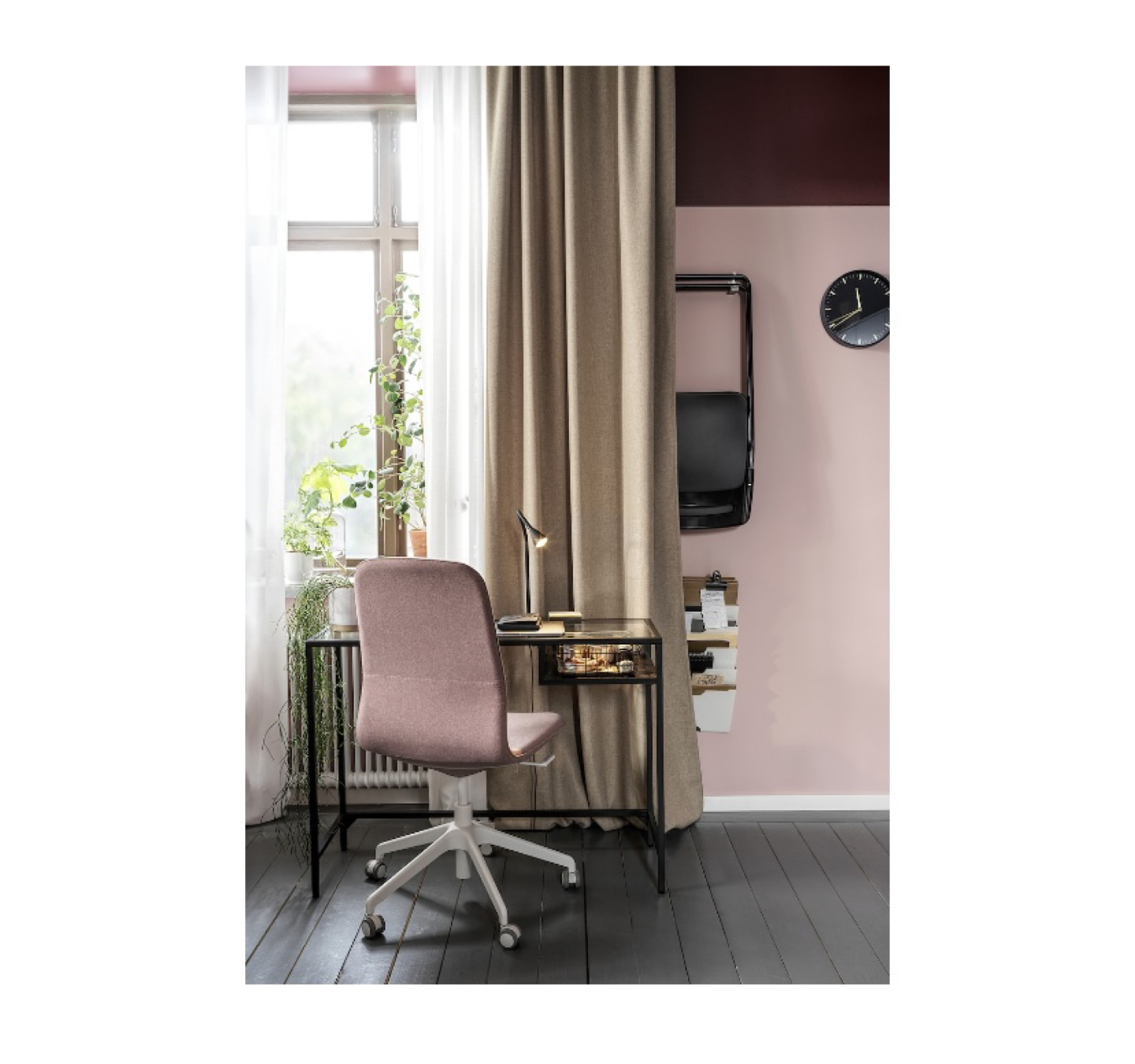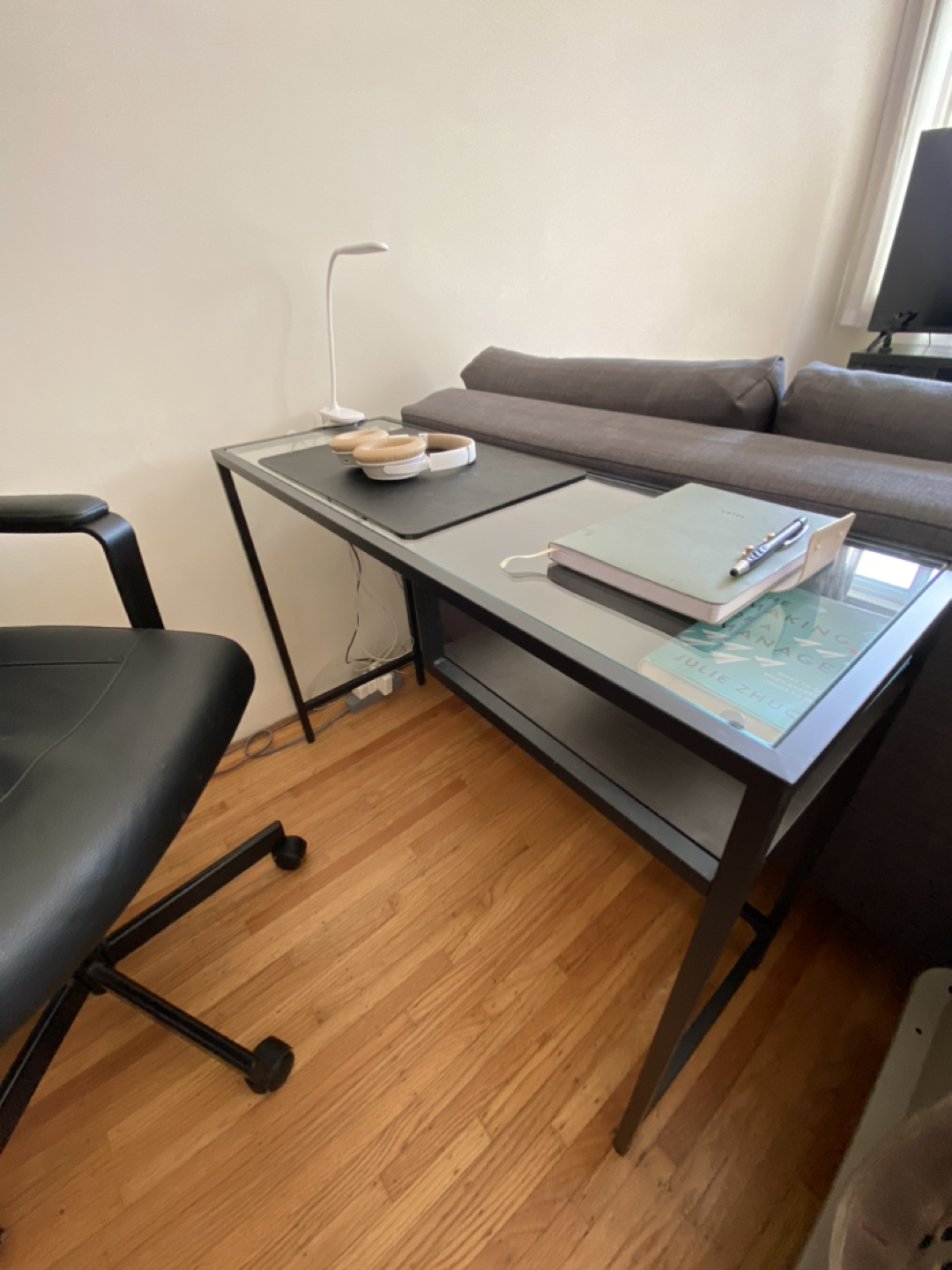 IKEA White TV Stand & Black Desk & Folding Chair