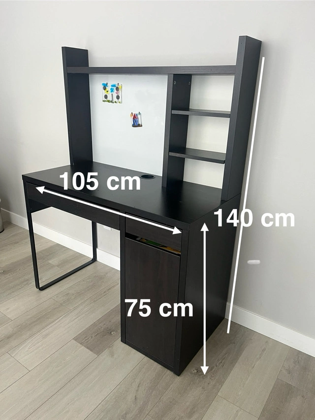 12This used IKEA desk comes with a hutch, offering ample storage and a sleek design. It's perfect for students or anyone needing an organized workspace. Dimensions are approximately 105 cm wide, 75 cm deep, and 140 cm high. While it has served me well, it's time for a new setup! Key features include: * Spacious work surface * Built-in hutch with shelves and a whiteboard * Cable management opening * Drawer and cabinet for additional storage I've checked prices for similar desks and comparable items are selling in the range of $75 to $150. Given the good condition, I've priced it competitively at $120. And just so you know, if you're seeing this ad, the desk is still available and waiting for its new home! Cash only