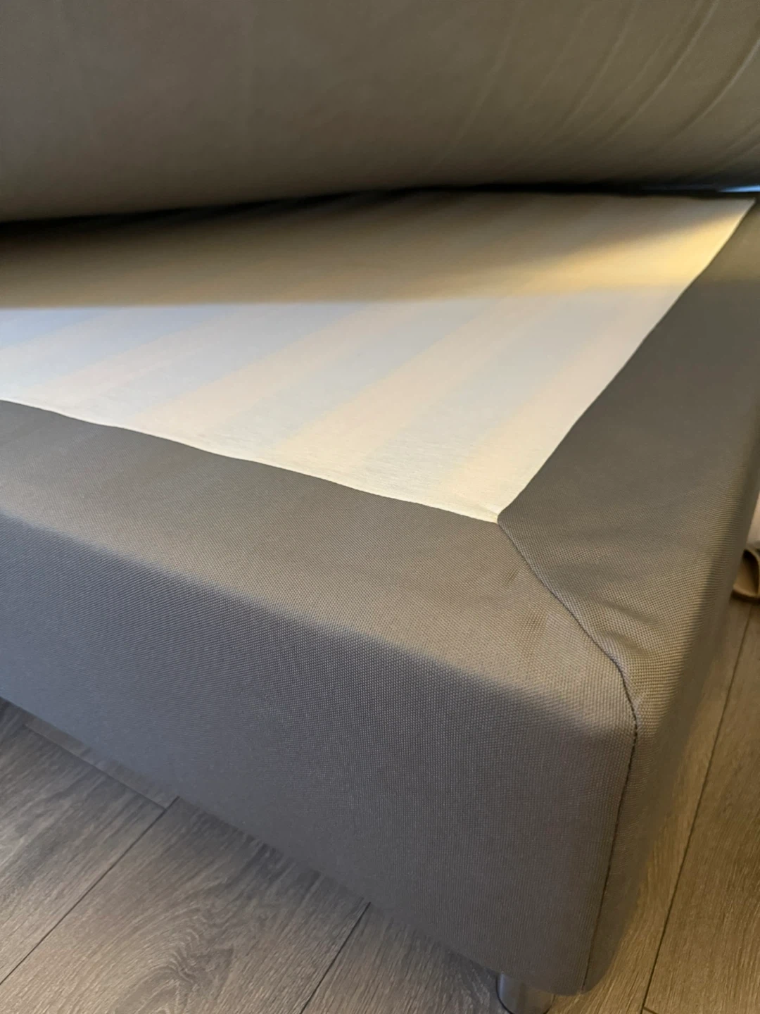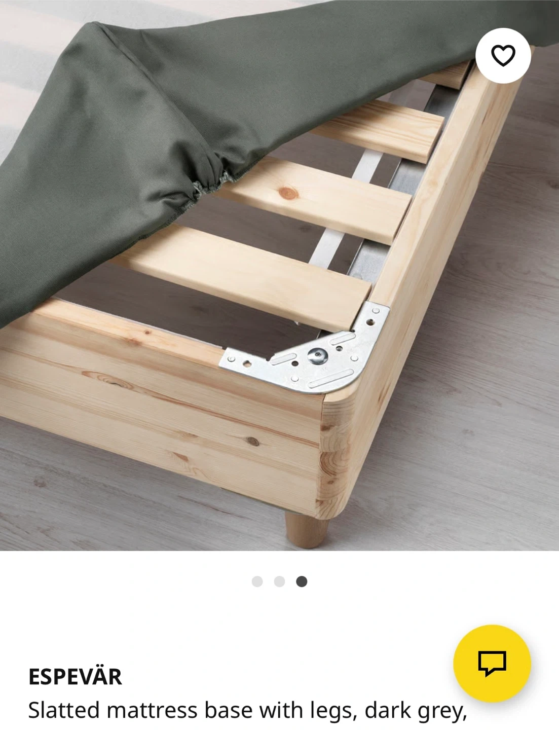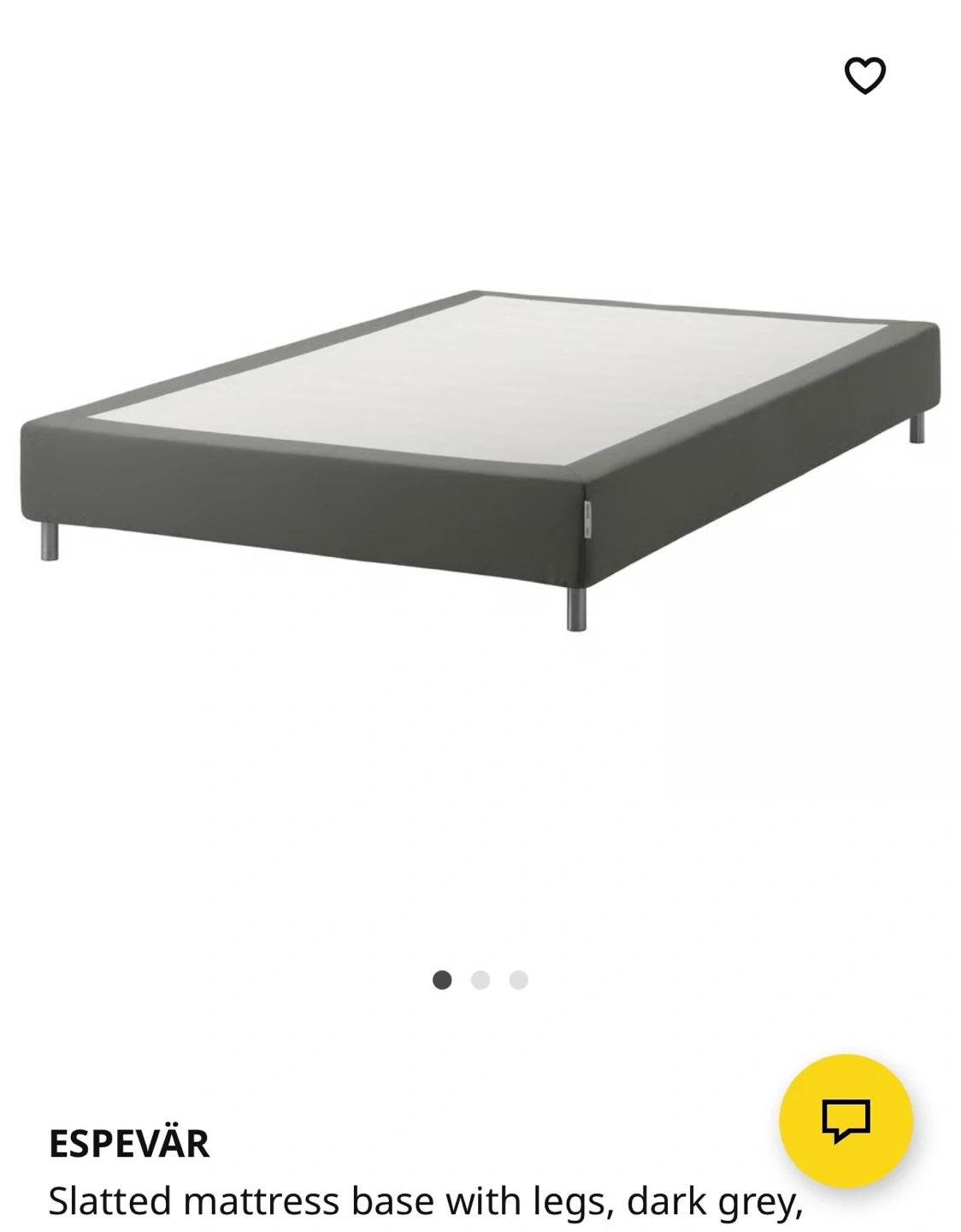 92Selling a double bed frame with legs and mattress in good condition. A mattress protector and fitted sheet were always used to preserve the mattress, so it has little to no stains. Bed frame: ESPEVAR Mattress: MORGEDAL