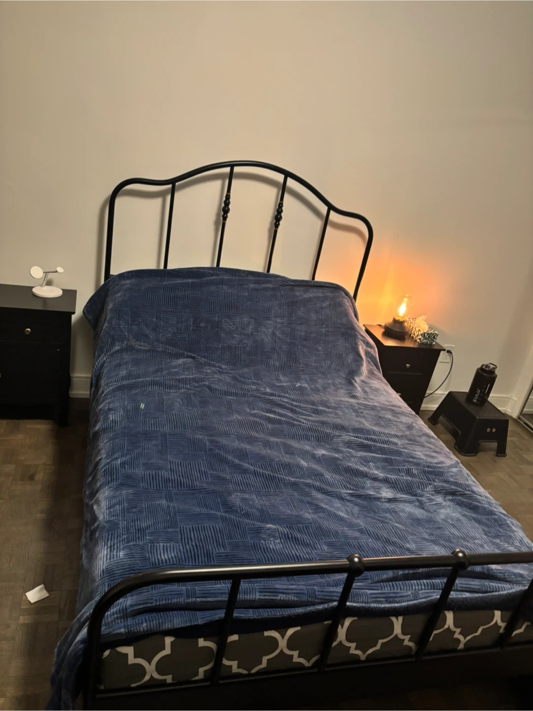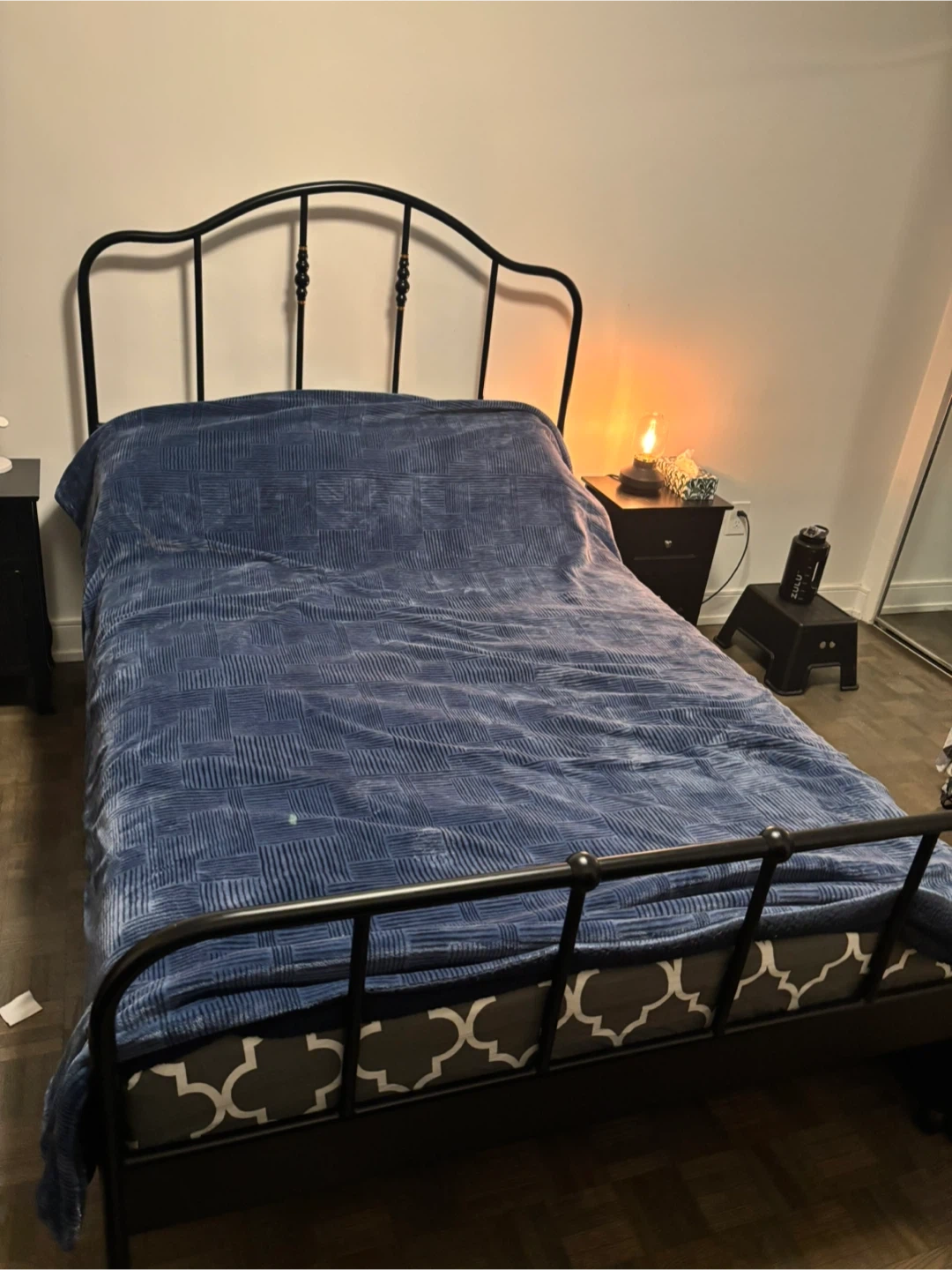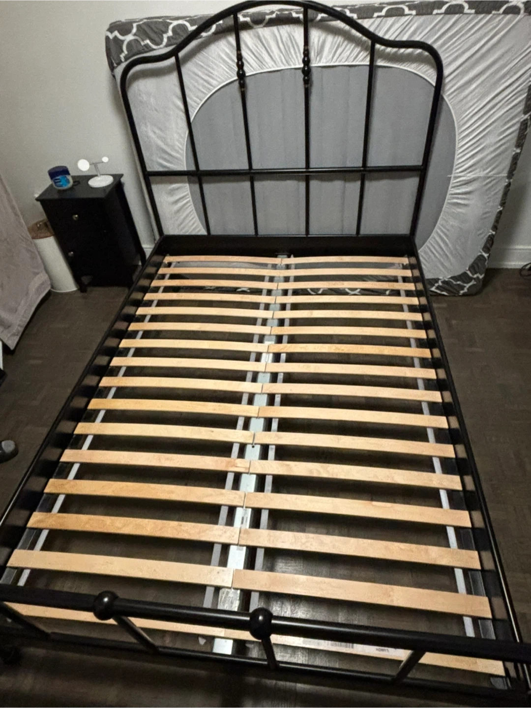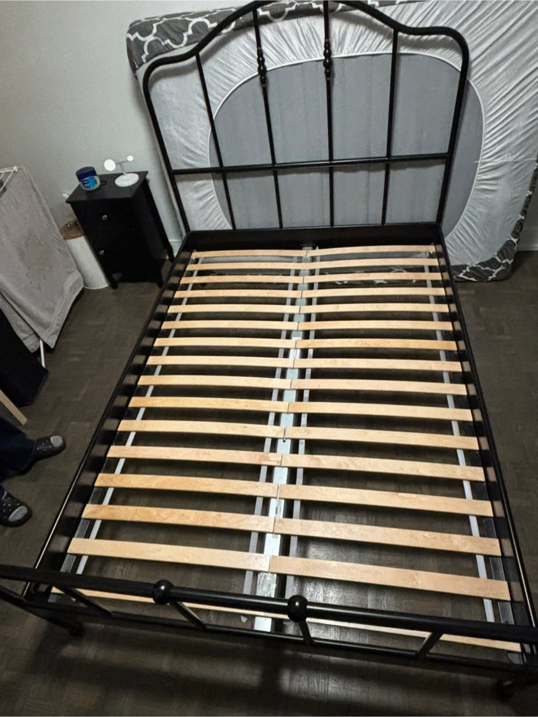 60Selling a bed frame with mattress and two matching nightstands. They are in good condition and would be a great addition to any bedroom. Bed frame with mattress $150 and nightstand $25 each. Everything is 1.5 yrs old.