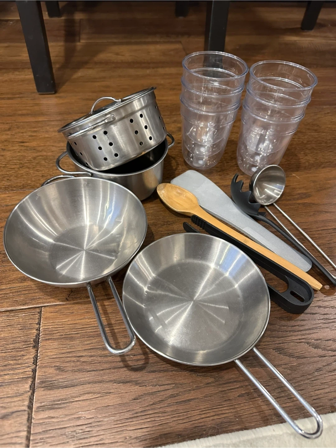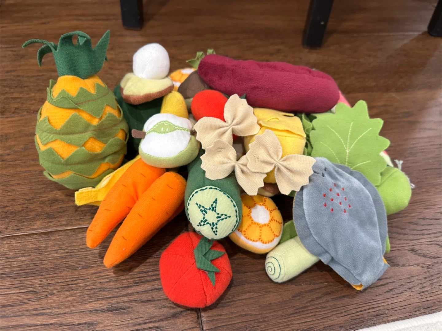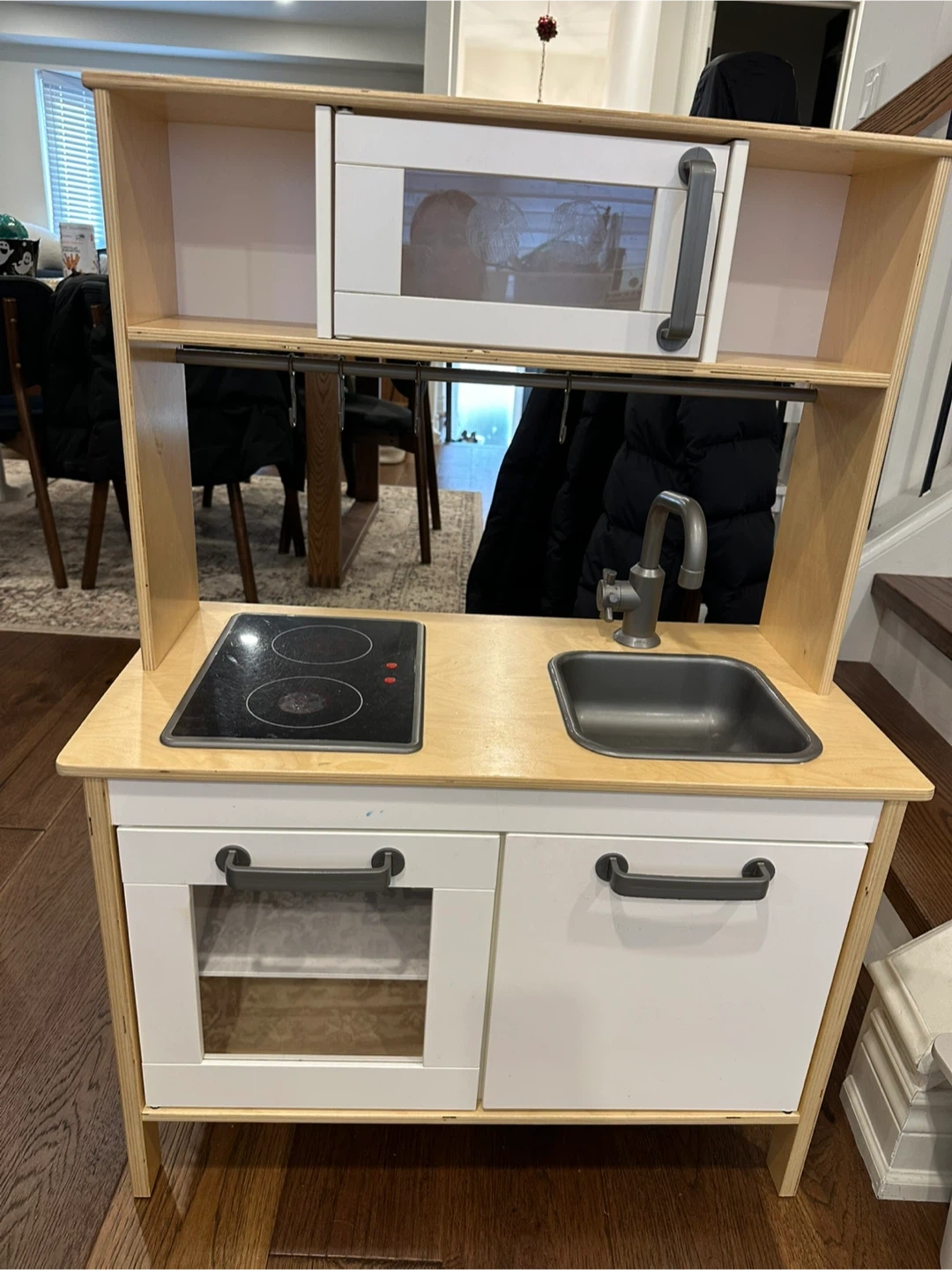 139IKEA Duktig play kitchen, including accessories! - play kitchen - mini broom for messes - pots, pans, cookware, cups - felt food (vegetables, fruit, meat, pizza, eggs) - Melissa Doug smoothie set - Melissa Doug cookie set - hamburger and sandwich stacker toy