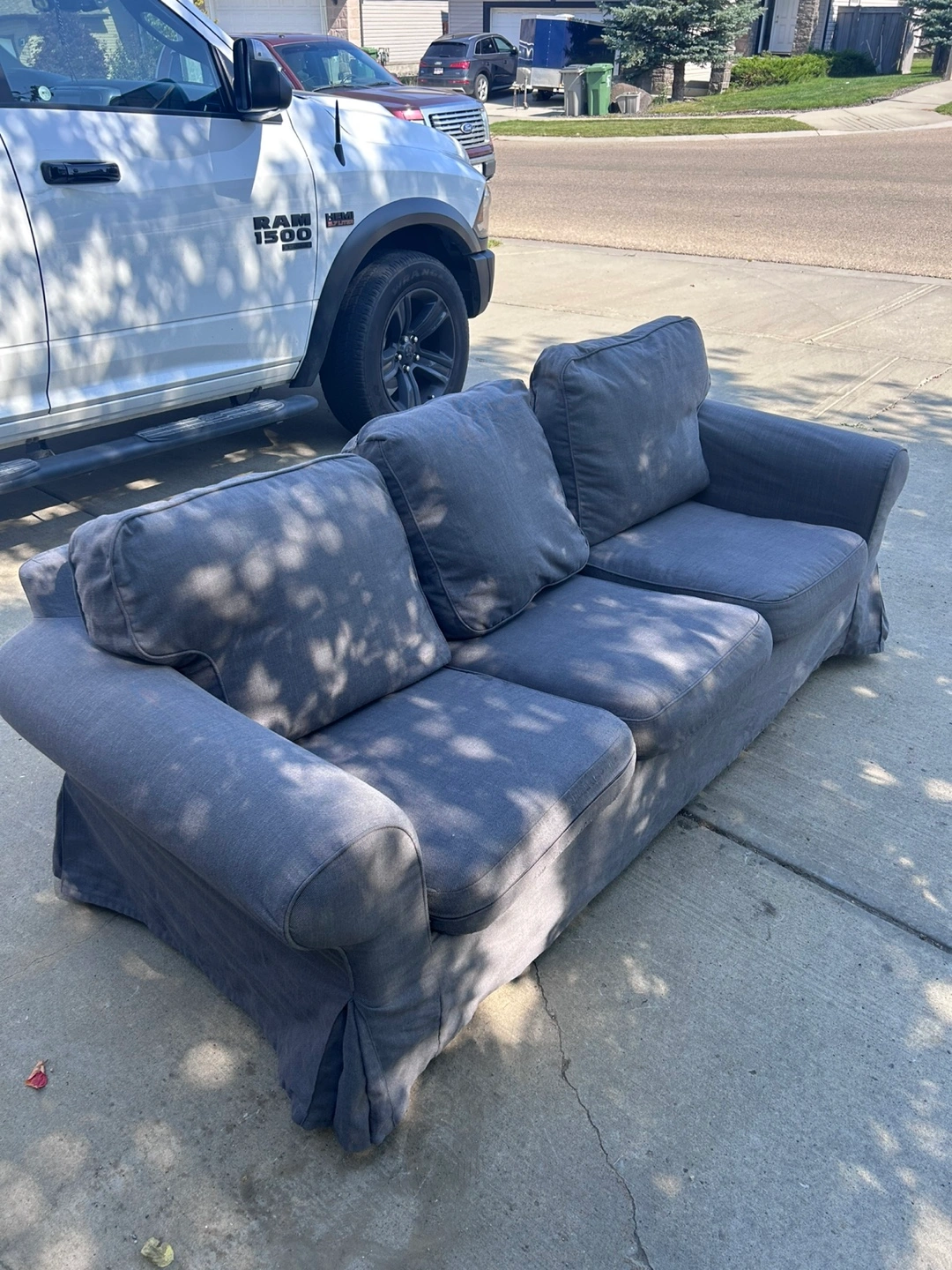 Selling a used IKEA Ekholma sofa in Hakebo dark gray. Please note that there is some wear and tear on the inside lining of the sofa, as shown in the pictures. Still a comfy couch! Frame is structurally solid, can get new covers from ikea starting at $149. Even at $150 this is a steal. Can deliver for a small fee.