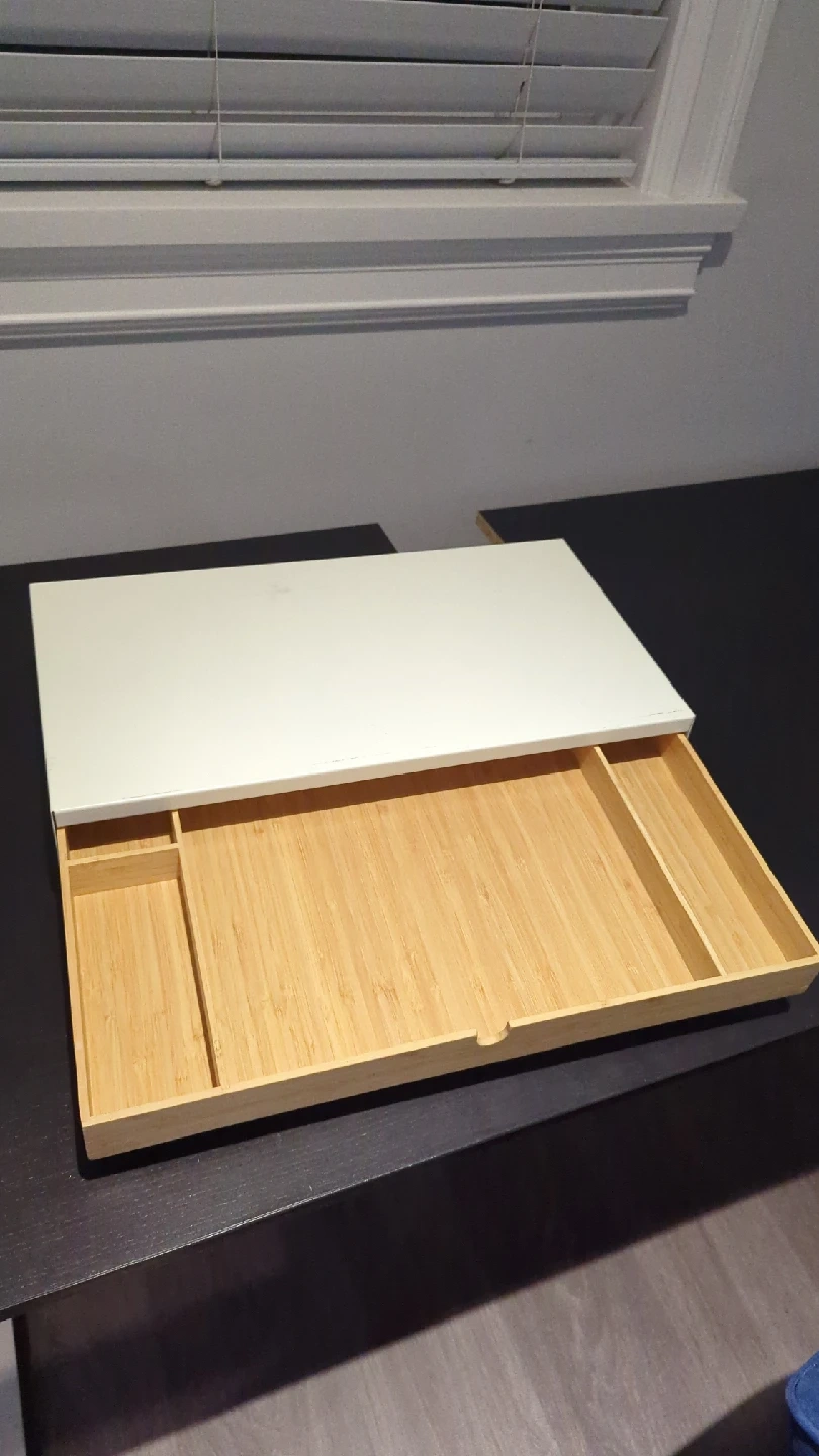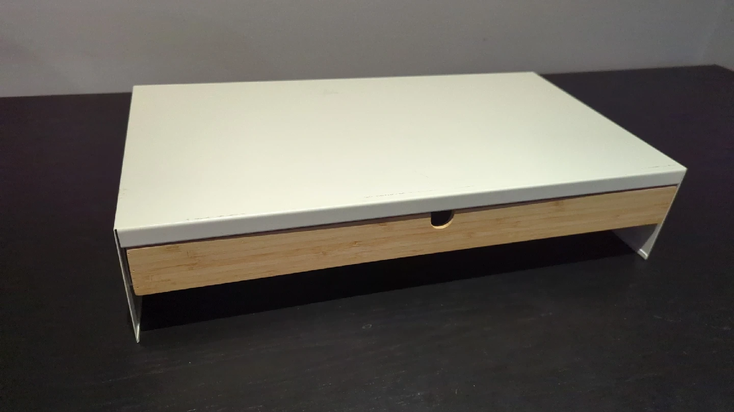 65Selling an IKEA Elloven monitor stand with a handy drawer! It's in great shape and perfect for tidying up your desk. The sleek design combines a white top with a natural bamboo drawer, adding a touch of style to your workspace. It's sturdy and provides a comfortable viewing height for your monitor, helping to reduce neck strain