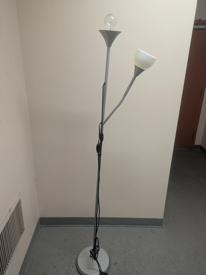 184Brighten up any room with this IKEA floor lamp, featuring a sleek design with two adjustable lights for focused or ambient lighting! This lamp has been a reliable source of light in my home and is in good working condition, ready to illuminate your space. * Adjustable Lights: Direct light where you need it most. * Sturdy Base: Ensures stability and prevents tipping. Looking to add a touch of illumination to your cozy reading nook or brighten up your living space? This IKEA floor lamp is your trusty beacon of light. Just a friendly heads-up, if you're seeing this ad, the lamp is still available and eagerly awaiting its new home!