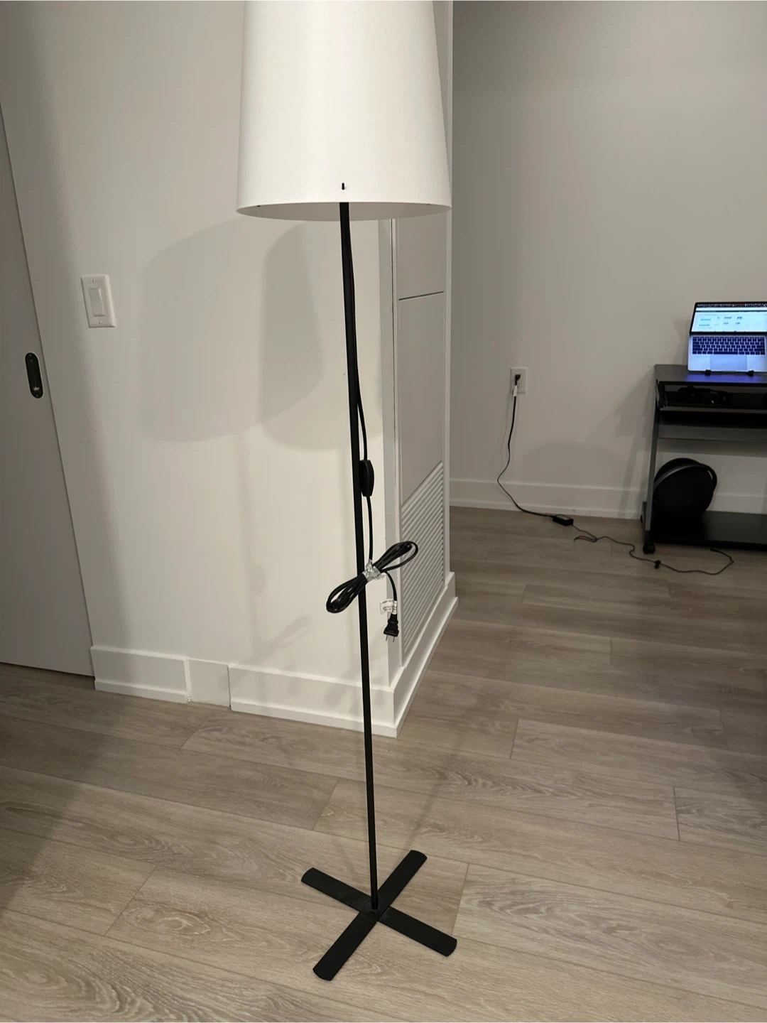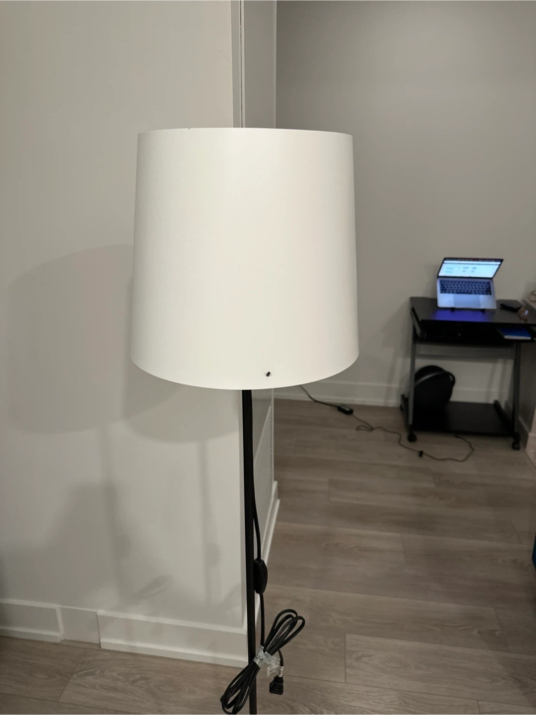 Selling a simple and stylish IKEA floor lamp! It features a white shade and a sleek black stand. Perfect for adding a touch of light to any room. It's in great condition and ready to brighten up your space