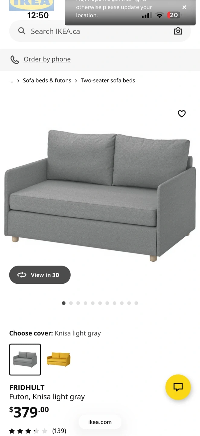 31Selling an IKEA FRIDHULT futon in Knisa light gray. Please note there is a coffee stain on the fabric in the middle of the couch. You can clean it or cover it with your favorite blanket. Otherwise good condition. We are non smokers. Message me with your offer! I really want to get rid of it fast.
