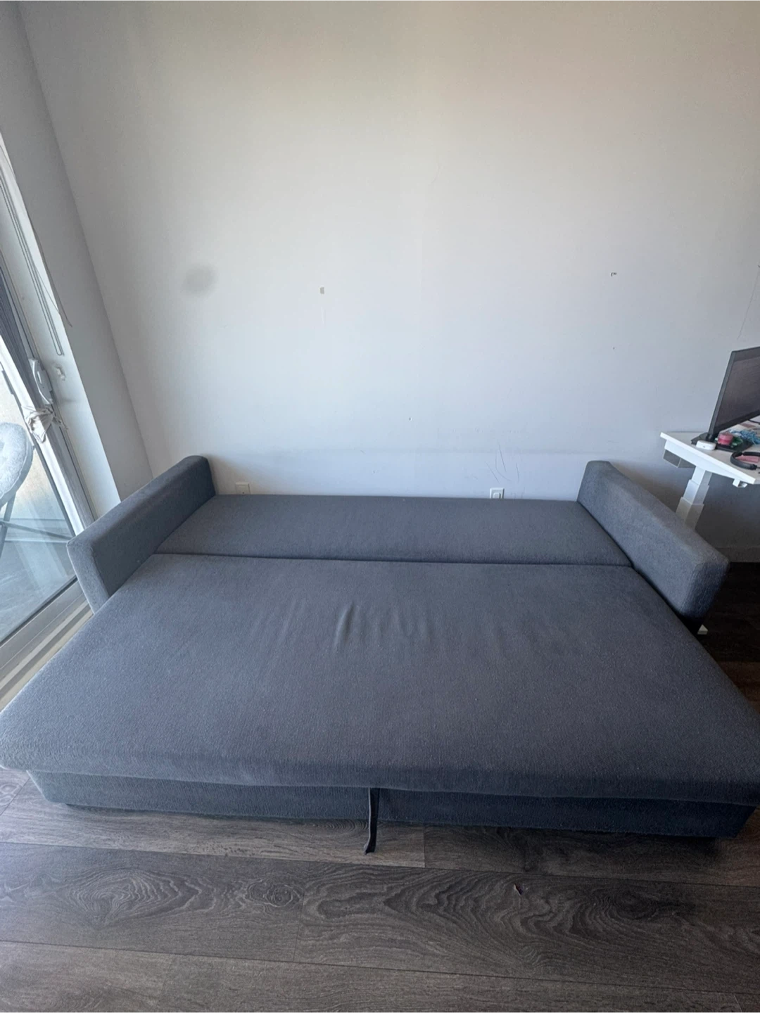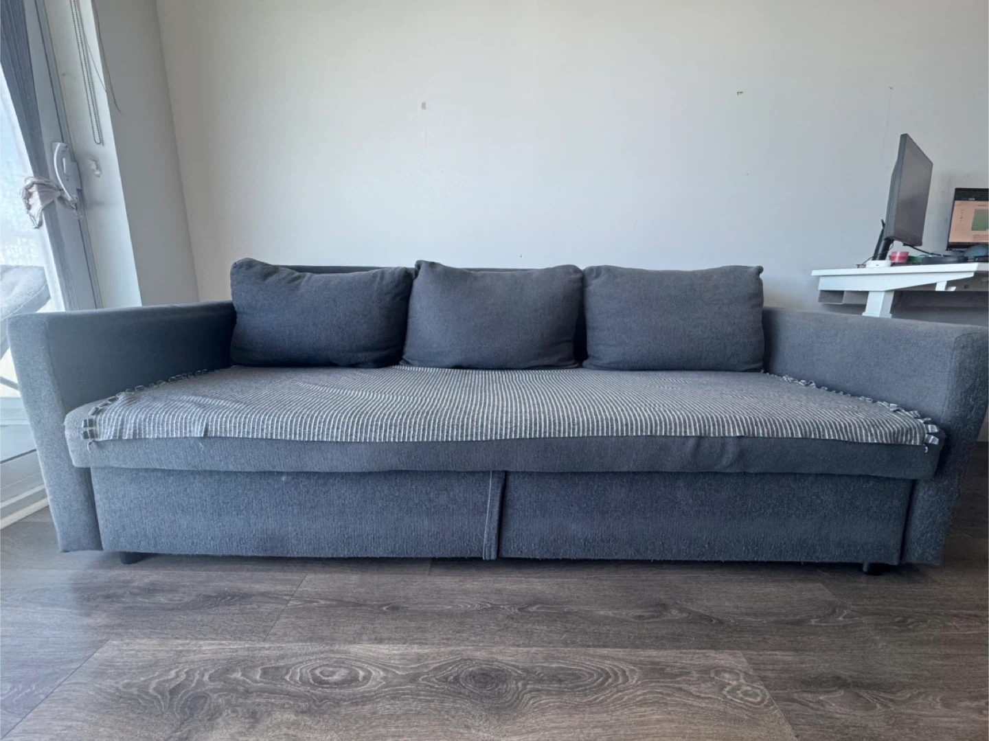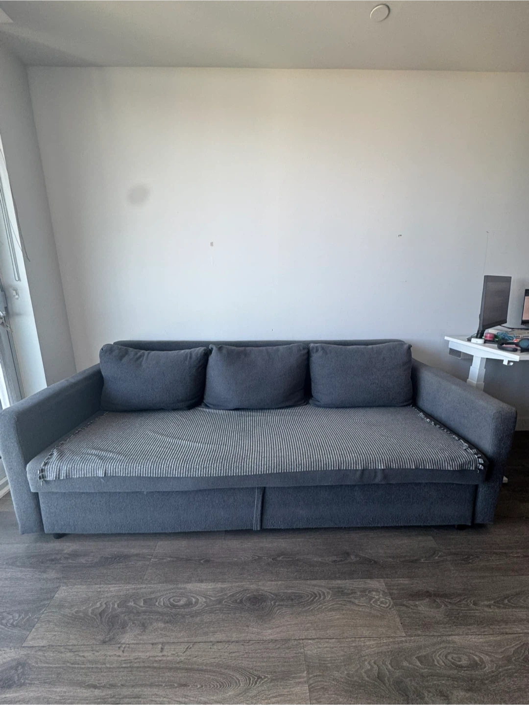 111Selling a gently used IKEA Friheten sleeper sofa in grey. It's in great condition and perfect for small spaces or guest rooms. This sofa easily converts into a bed, making it super practical for hosting friends and family. It's a comfy spot to relax and watch TV, and then transforms into a cozy bed when needed