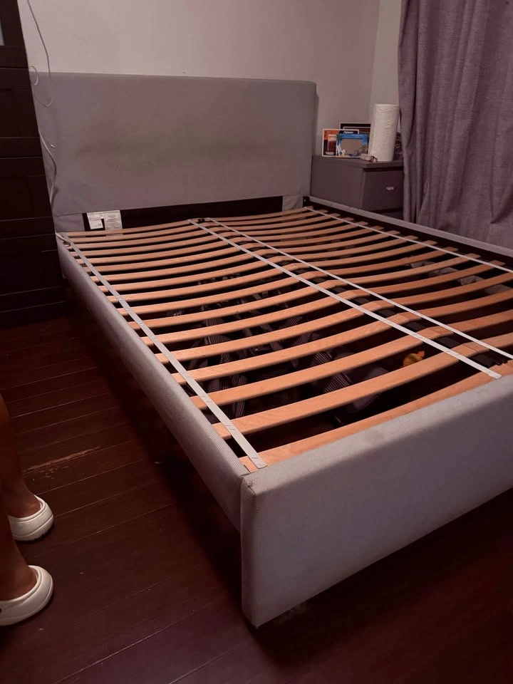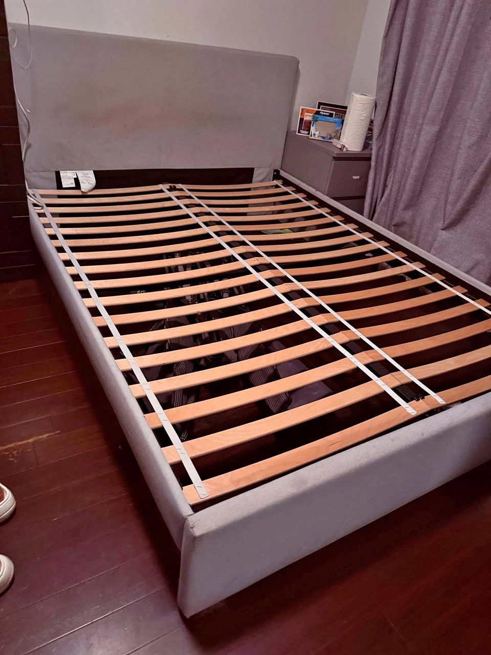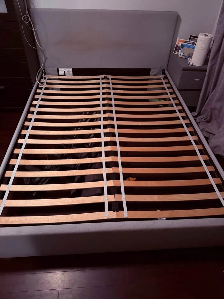 75Selling a Queen-size IKEA GLADSTAD upholstered bed frame in great condition. Minimalist Scandinavian design with a padded grey headboard and wooden slat base for excellent mattress support. ✅ Size: Queen (fits standard 60” × 80” mattress) ✅ Brand: IKEA (GLADSTAD model) ✅ Color: Light grey fabric upholstery ✅ Material: Polyester fabric, polyurethane foam, and solid wood slats ✅ Condition: Good overall — clean frame, sturdy support, minor marks on the headboard (shown in photos) ✅ Easy to assemble and disassemble – all parts intact Perfect for modern apartments or guest rooms — sleek, comfortable, and built to last. 📍 Pickup in Vancouver near vcc clark station 💸 Asking $140 OBO (retails for $329+ at IKEA) Let me know if you're interested!