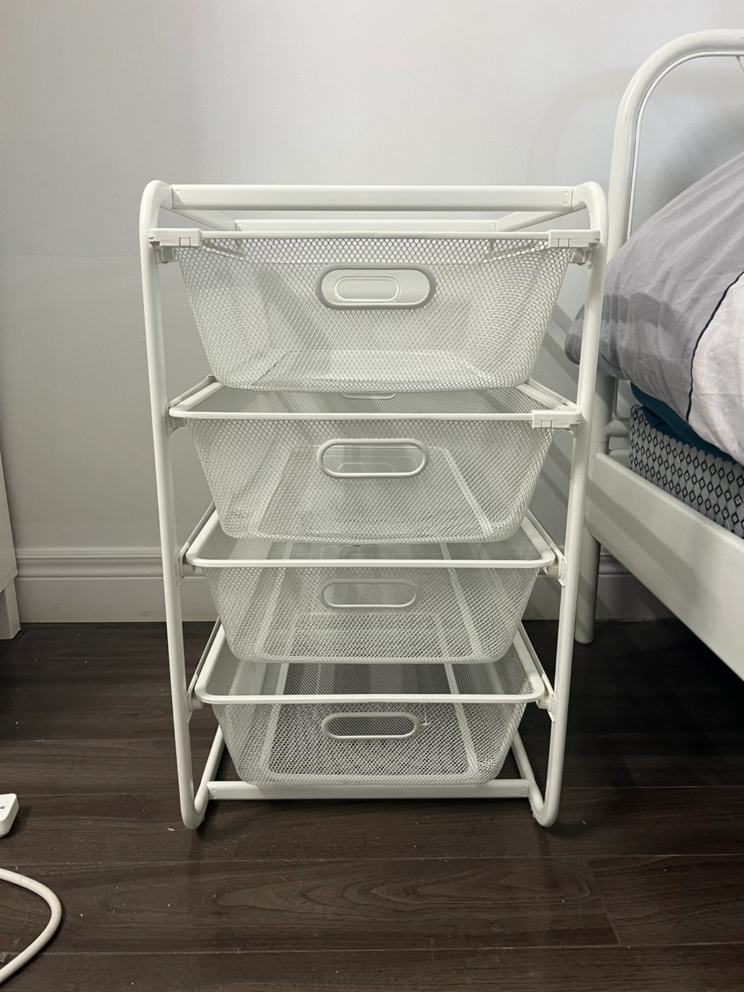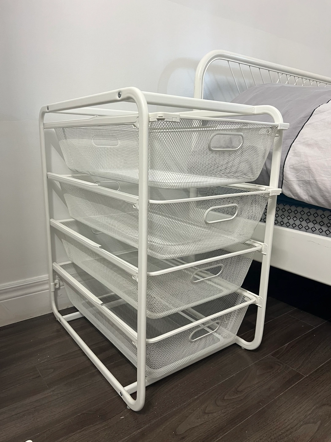 Looking to sell this IKEA HELMER drawer unit. It's in great shape and perfect for organizing your space. The white colour fits well with any decor. It has four drawers, providing ample storage. Easy to move around thanks to the casters