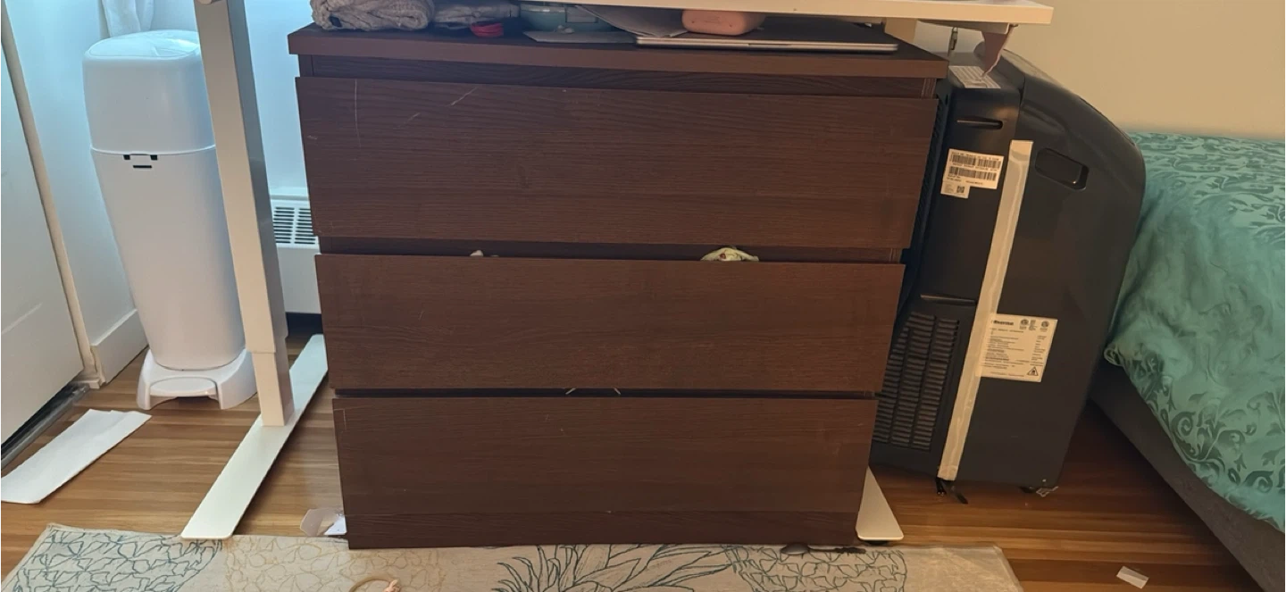 10Selling a gently used IKEA Hemnes 3-drawer chest in brown. Great for extra storage in a bedroom or living area. Solid wood; feels nice and sturdy. Brand: IKEA Model: Hemnes Color: Brown
