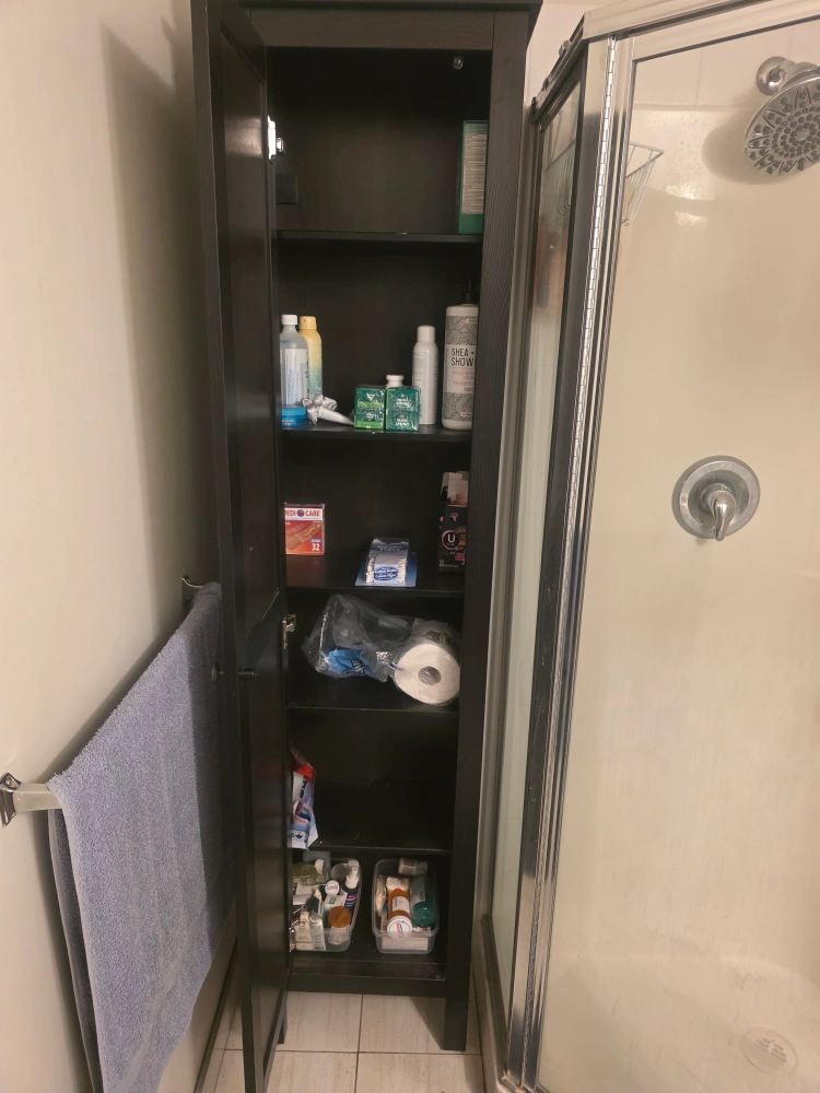 108Selling an IKEA Hemnes mirror cabinet in black-brown. It's a great way to add storage to a small bathroom or powder room. It's in good condition and ready for a new home. Perfect for organizing your toiletries and keeping your space tidy