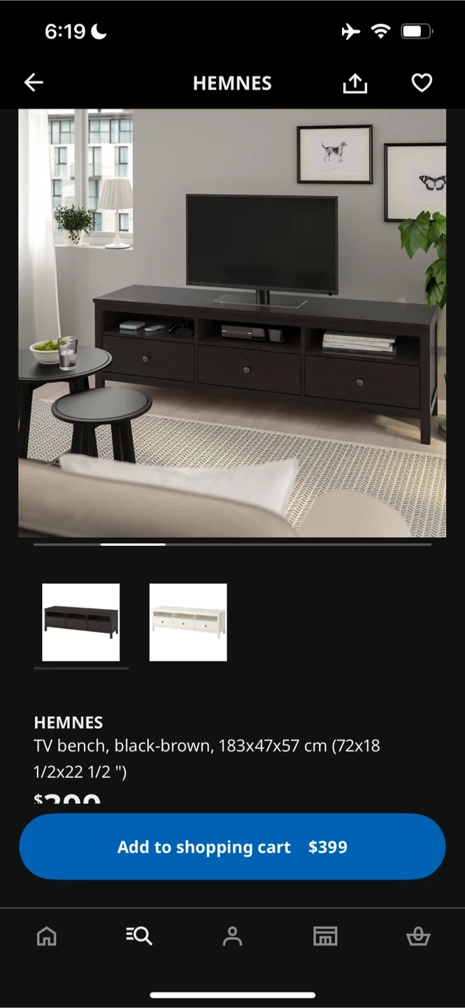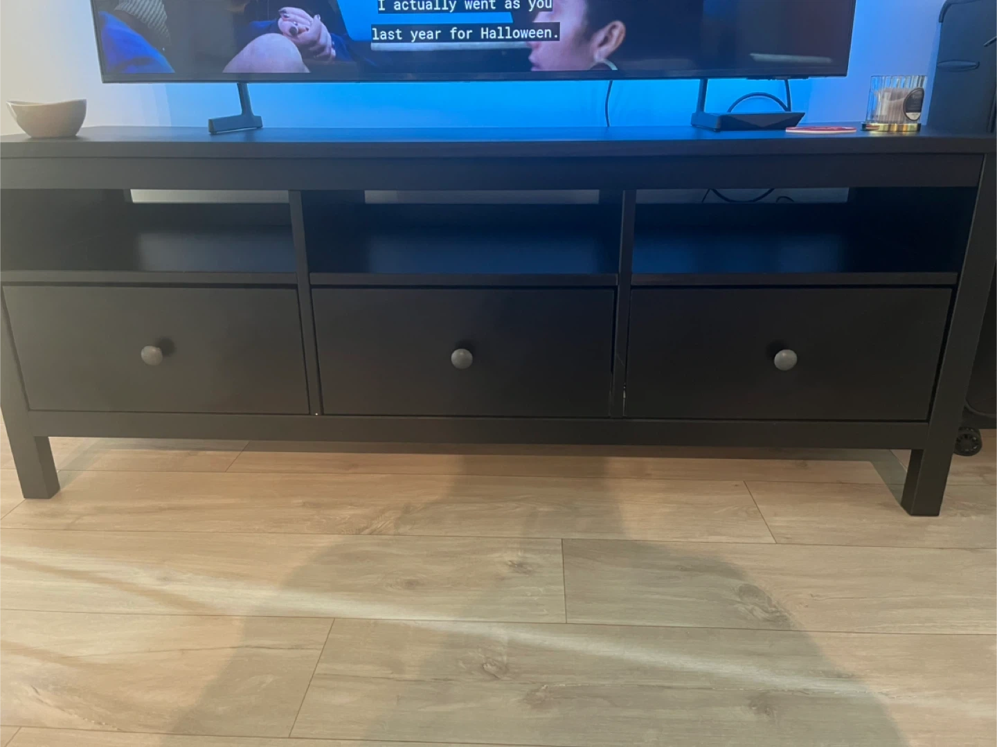 10Selling an IKEA Hemnes TV bench in black-brown. It's in great shape and ready for a new home! Dimensions are 182.2x43.5x56.7 cm. Perfect for organizing your entertainment area