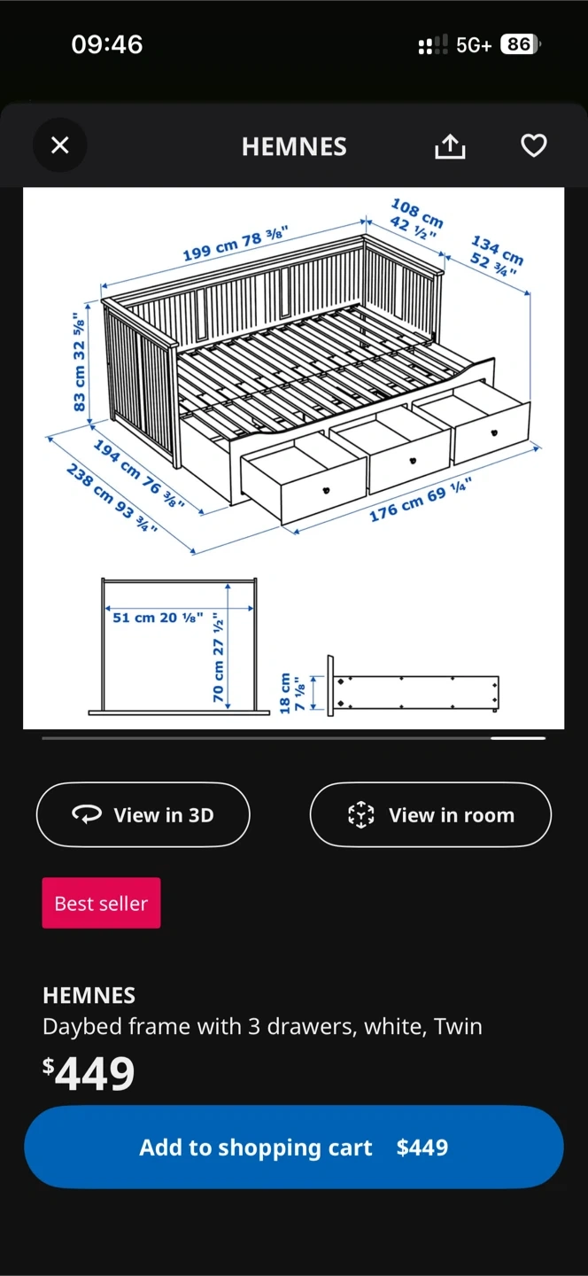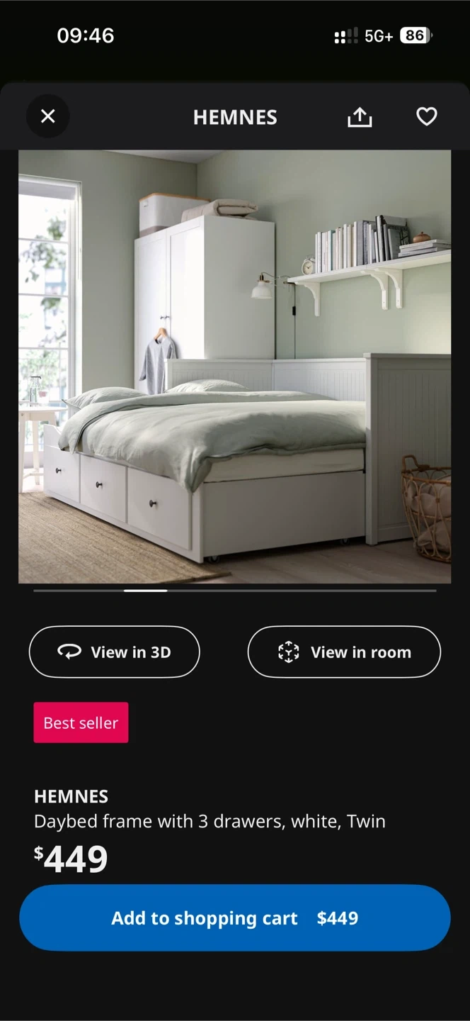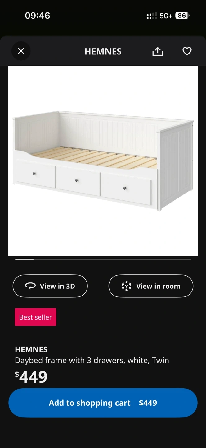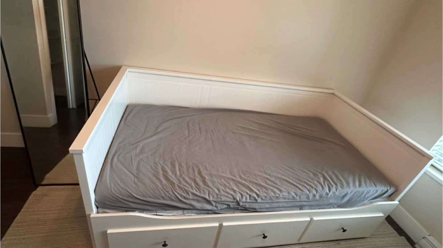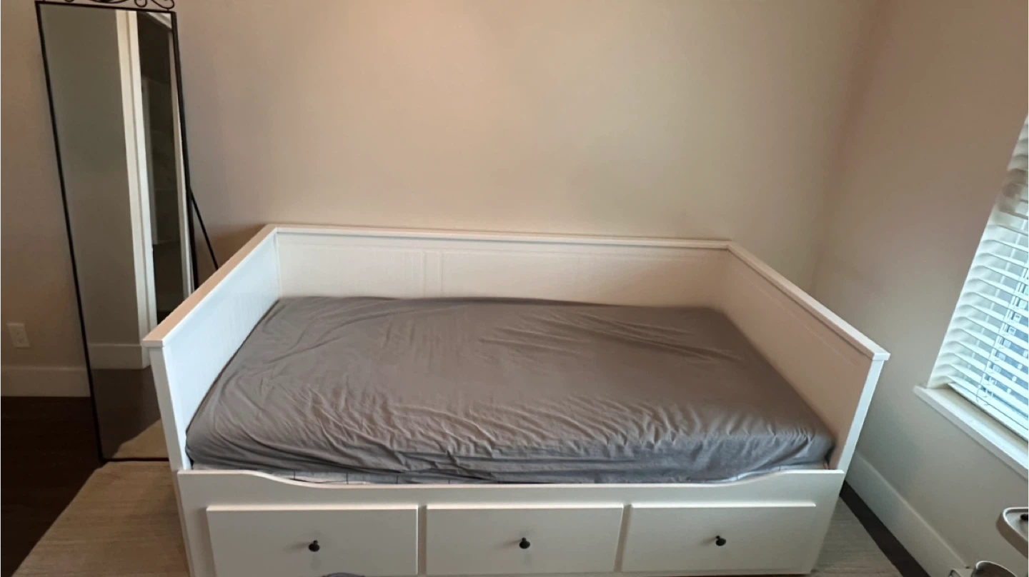 100Selling an IKEA Hemnes daybed with three drawers! It's in great shape and ready for a new home. The frame is white and include a twin-size mattress Originally bought for $449.