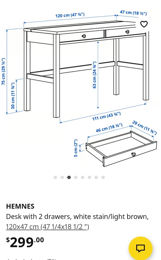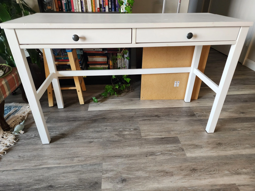 Selling a used IKEA Hemnes desk in a white stain finish! It comes with two drawers. The dimensions are 120x47 cm (47 1/4x18 1/2 "). It's a great desk for a home office or study space no delivery. pick up near Yong and Eglinton
