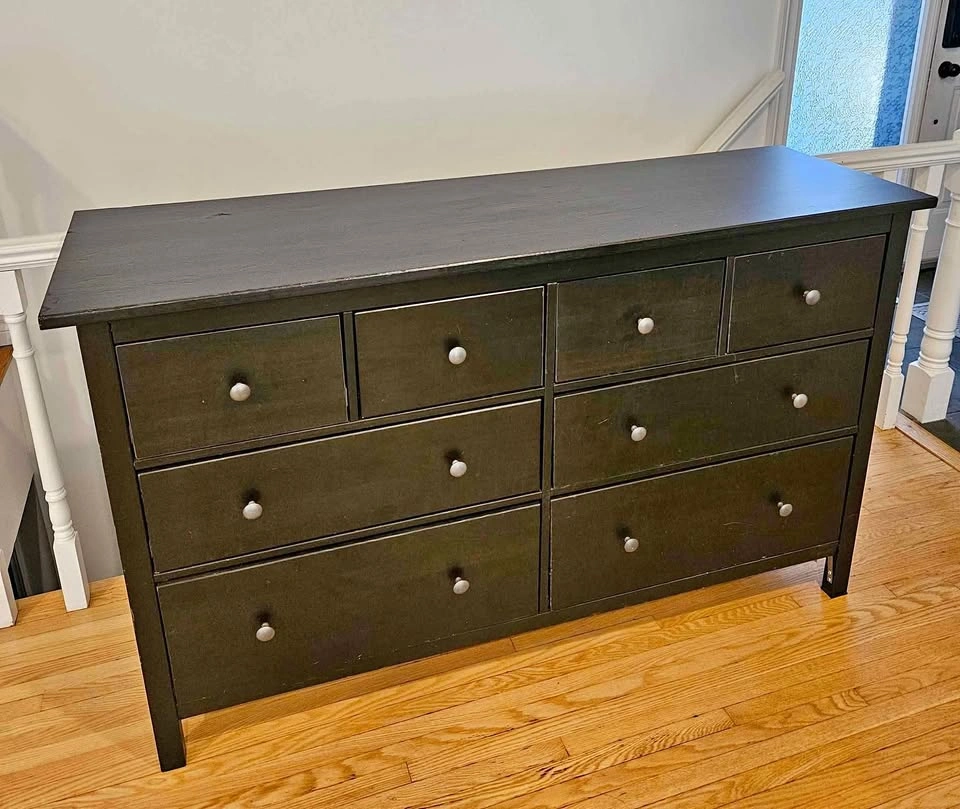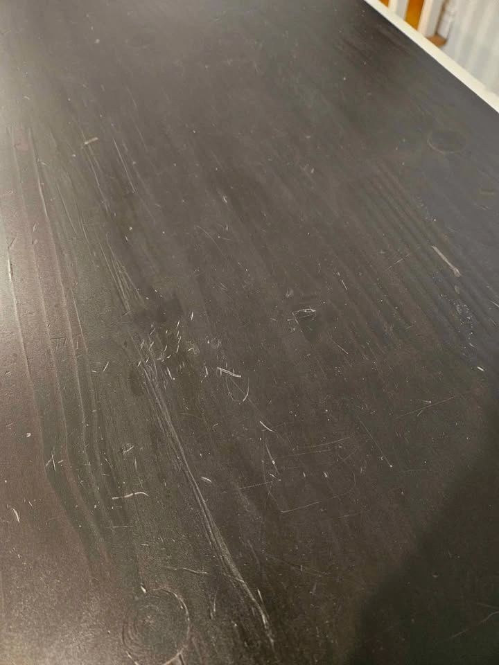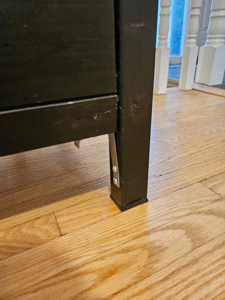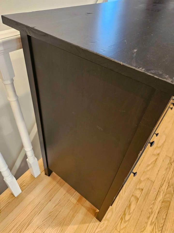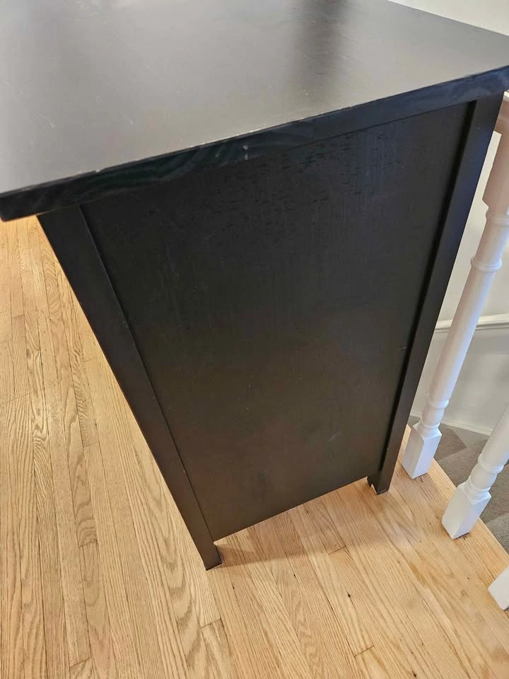 Solid pine. Has marks and dings. Bottom right has an L-bracket to hold the trim and leg together (see last photo). Retails for $450+tax USD. Pick up near Don Mills and Sheppard. Delivery available for a fee depending on location