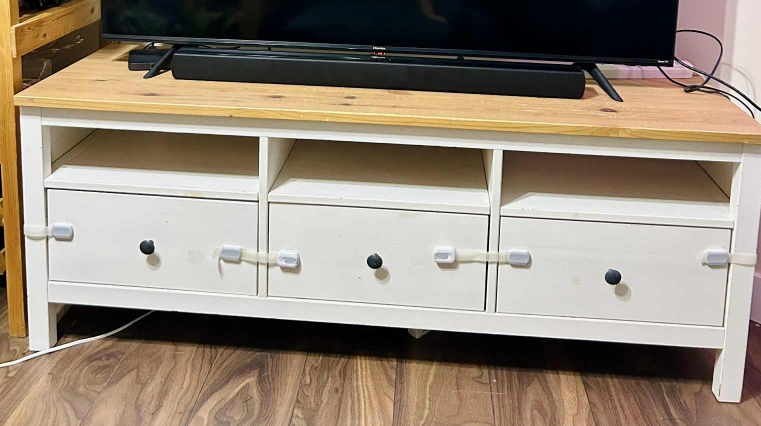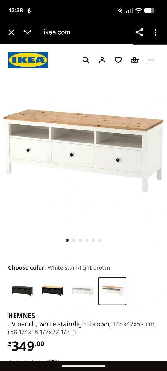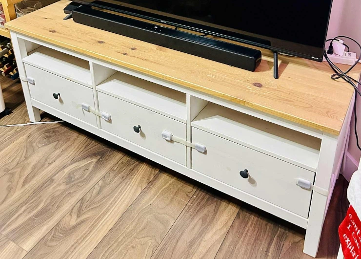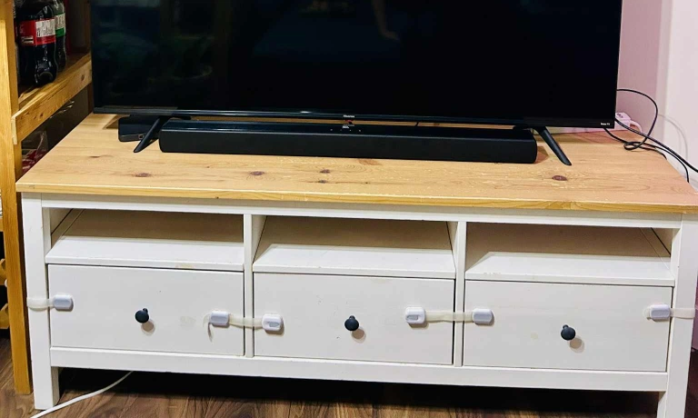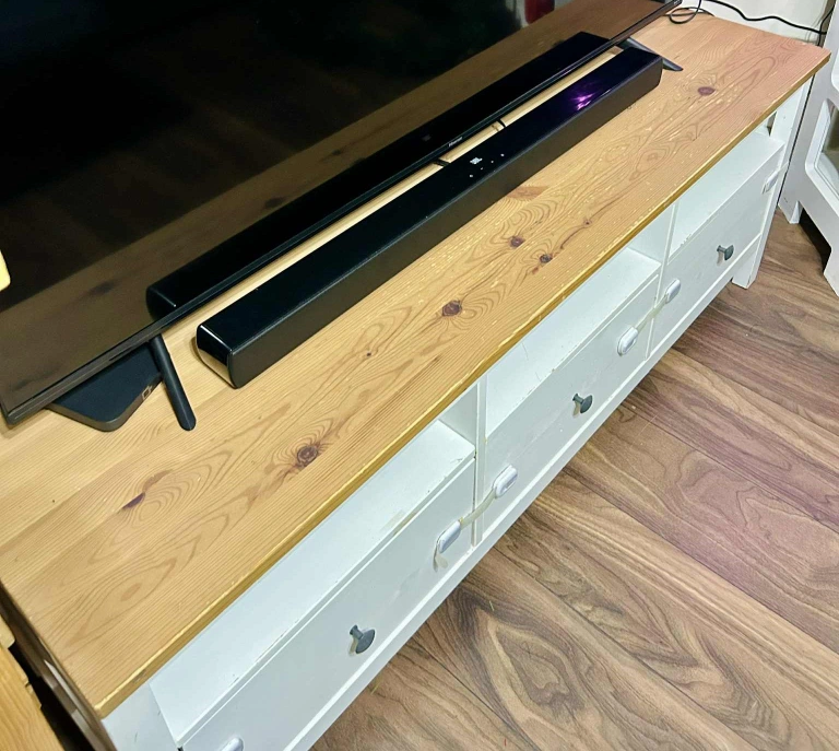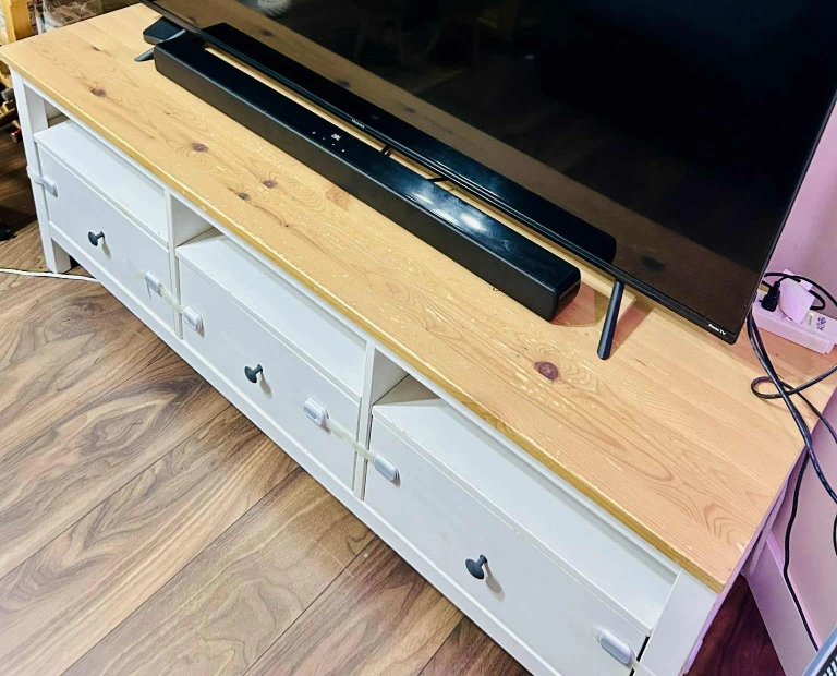 Selling an IKEA Hemnes TV unit in the white stain/light brown finish. It's in great shape and provides lots of storage with its drawers and open shelving. Perfect for organizing your media and accessories!