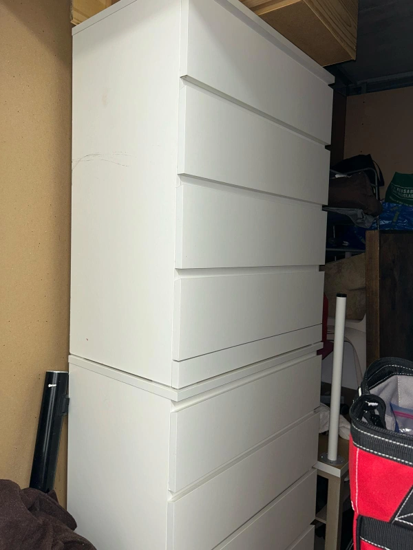 1000+Selling 2 white IKEA Hemnes dresser with 4 drawers. It's in good condition and provides lots of storage space. There are some minor signs of wear, like a few scratches. This dresser is perfect for organizing your clothes and keeping your room tidy