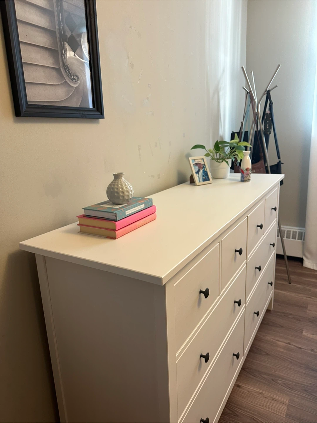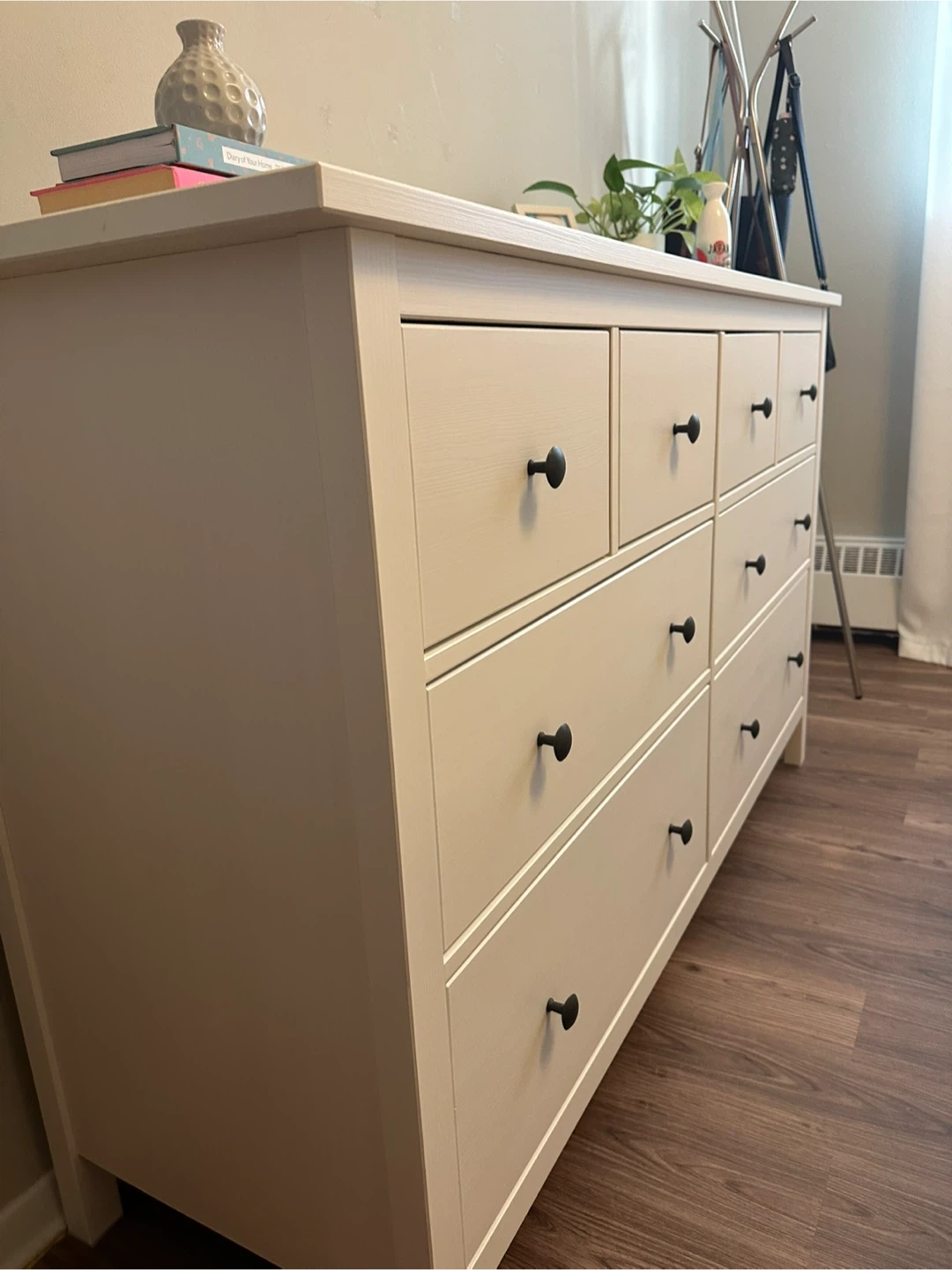 Selling a white dresser with eight drawers! It's in great shape and ready for a new home. Perfect for adding storage to any bedroom or living space. There are no chips or scratches, and all drawers are working well. Brand: IKEA Model: HEMNES Size: Not available at IKEA anymore. ✨