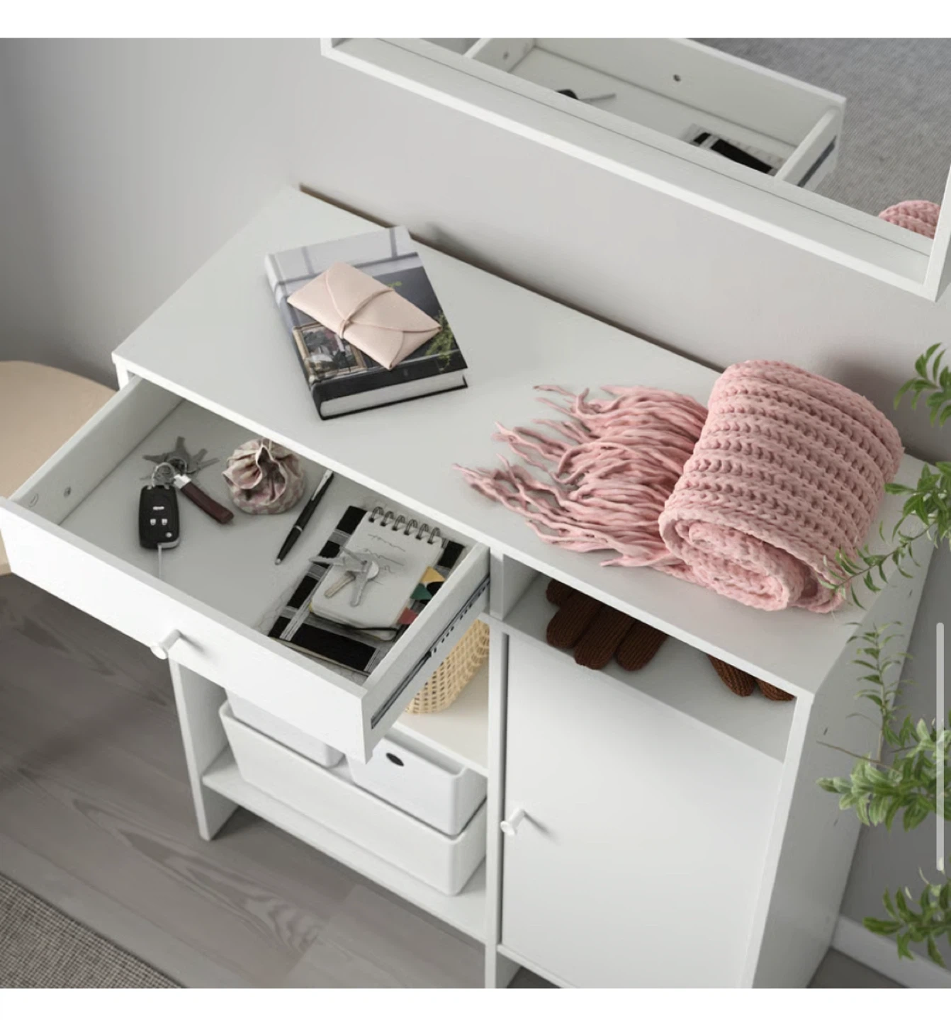 Selling a white IKEA Hemnes hallway cabinet. It's perfect for organizing your entryway or hallway. It features a drawer, shelves, and a cabinet for ample storage. Great for keeping your space tidy and clutter-free!