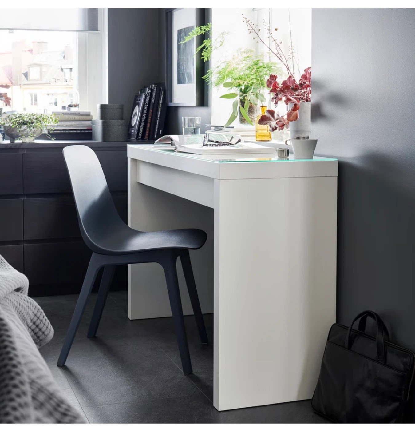 10Selling a lovely white Hemnes vanity table from IKEA! It features a sleek glass top and a handy drawer for storage. Dimensions: - Width: 47 3/8" (120.3 cm) - Depth: 16 1/8" (41.0 cm) - Height: 30 1/2" (77.4 cm)