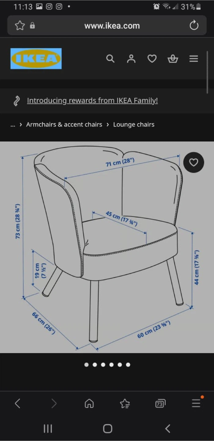 I'm selling an IKEA HERRÅKRA armchair in Skulsta black! It's a stylish lounge chair with a sleek design. Key specs: - Dimensions: 73 cm (28 3/4") height, 71 cm (28") width, 60 cm (23 3/4") depth - Seat depth: 45 cm (17 3/4") - Seat height: 44 cm (17 3/8") -we didn’t use it ,it’s like as new Originally bought for $199